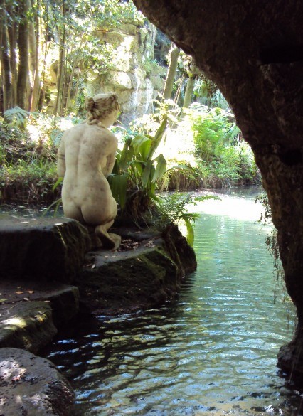 팔라틴 예배당은 제2차 대전시 연합국의 폭격으로 가장 많은 피해를 당해, 8개의 성모마리아 의 일생을 그린 성화 중 7개가 불에 탔고 예배당도 대부분 파 괴되었지만, 전쟁 후 천장과 벽 은 복원하였지만 기둥은 파괴의 흔적이 보인다. 팔라틴 예배당 에서 꽤 떨어져있는 이탈리아 정원으로 가는 숲 사이의 길에 는 12개의 연못이 길게 도열하고 있으며, 주변에는 물 고기와 천사 등 다양한 조각들 이 세워져 있다. 이탈리아 가든 외에 조용한 곳에 자리 잡고 있는 영국 가든에서 가볼만한 곳은 비너스가 무릎을 꿇은 자세로 앉아 있는 ‘비너스의 목욕 연못’이다.