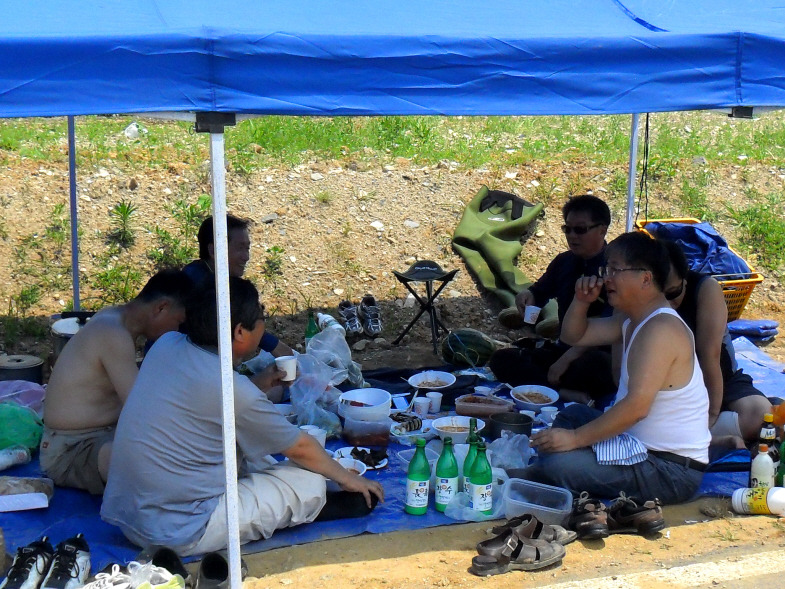 ↑ 산들바람부는 강변에서.. 한잔 하고 즐기는 허용범성님의 오수(午睡)는 천하의 무엇과도 바꿀수 없는~~