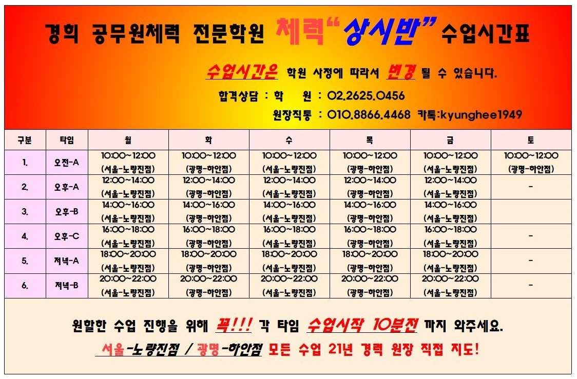" 경희 공무원체력 전문학원 소방공무원 수업시간표~ ♡