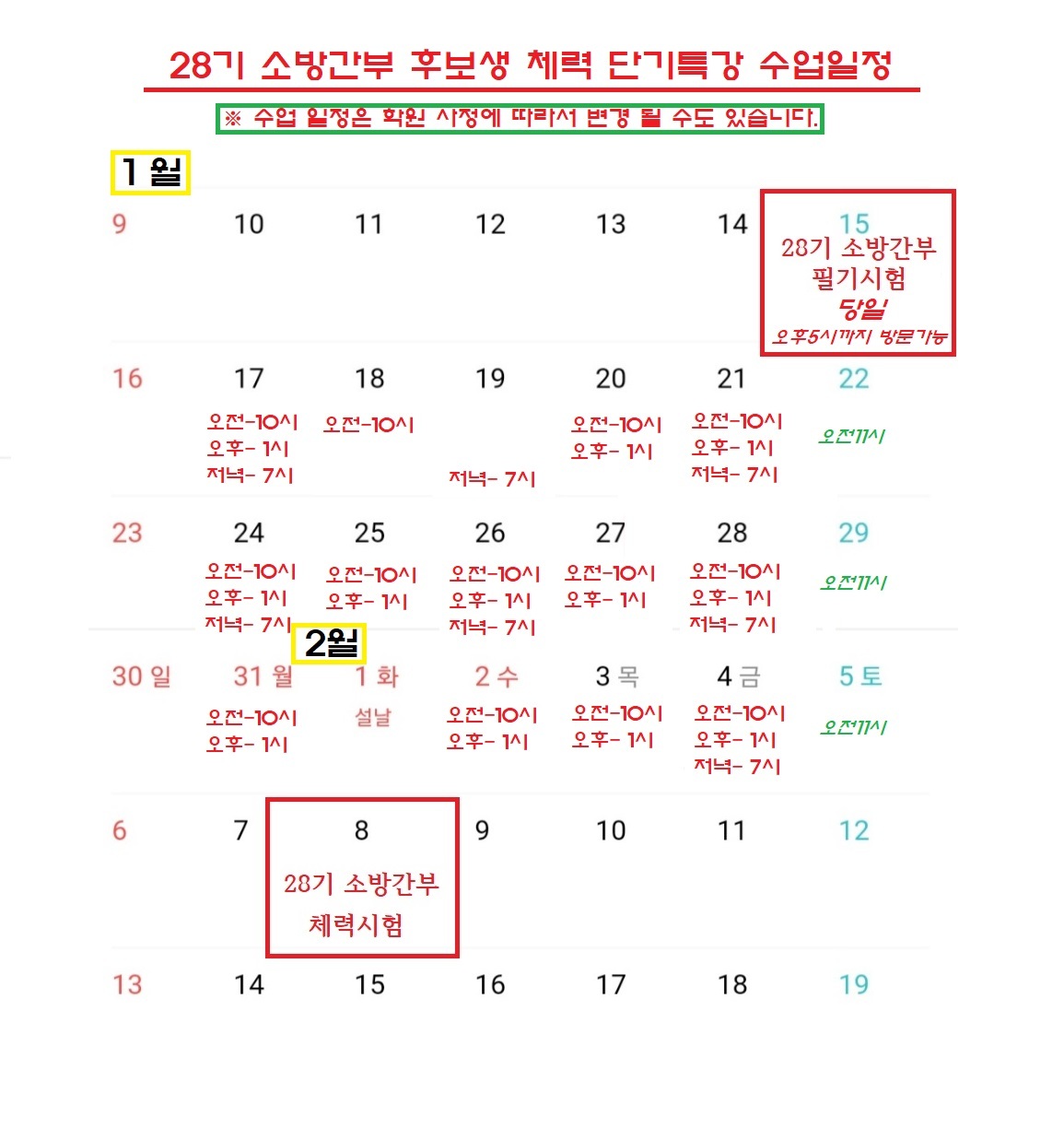28기 소방간부 체력특강 1월 17일 월요일 개강