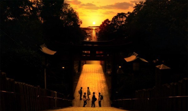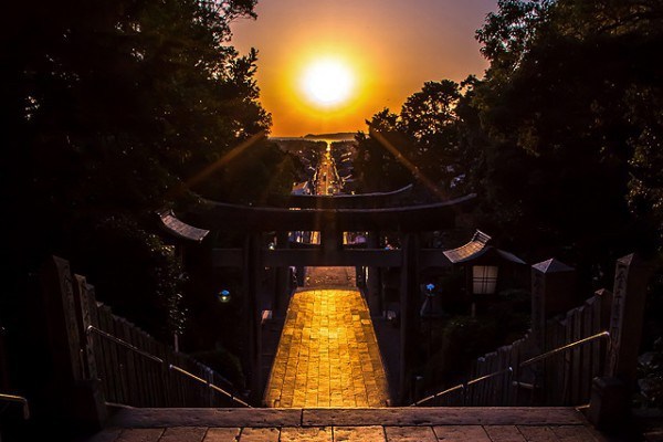 1년중 2월과 10월 약 20일 정도만 빛의 길[光の道]을 보여주는 미야지타케 신사의 돌계단과