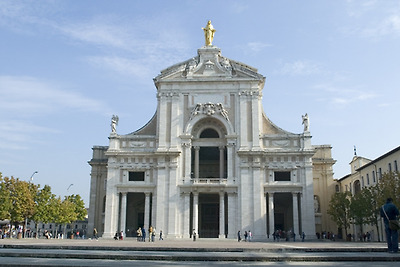 1568년 3월 15일 당대의 유명한 움브리아 출신 건축가 갈레아초 알레씨 (Galeazzo Alessi, 1512-1572년)는 교황 비오 5세 (Pio, 1566-1572년)의 부탁을 받고 프란치스코 수도회의 심장인 포르치운콜라를 품에 안은 마리아께 봉헌된 대성당 도면을 완성하였다.
