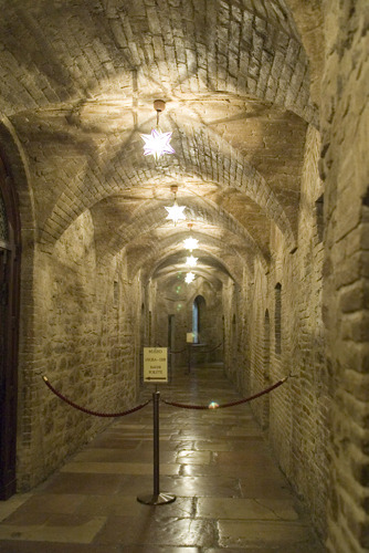 그 복도 끝을 돌아 도착하는 곳이 바로 장미의 경당이다. 이는 원래 프란치스코 성인이 금욕과 단식으로 쇠약한 몸을 뉘였던 보잘 것 없는 오두막이 있던 자리로 보나벤투라 (Bonaventura) 성인이 1260년경에 이곳에 경당을 마련하였다.