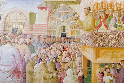 경당 제대 앞과 양쪽 벽면에는 프란치스코 성인의 생애의 중요한 사건을 재현한 프레스코화가 있다.