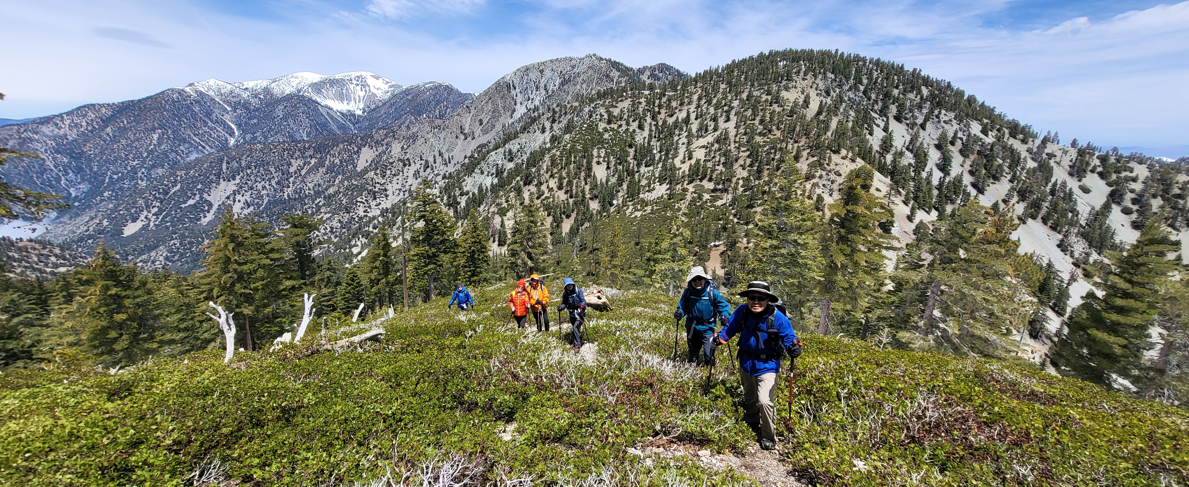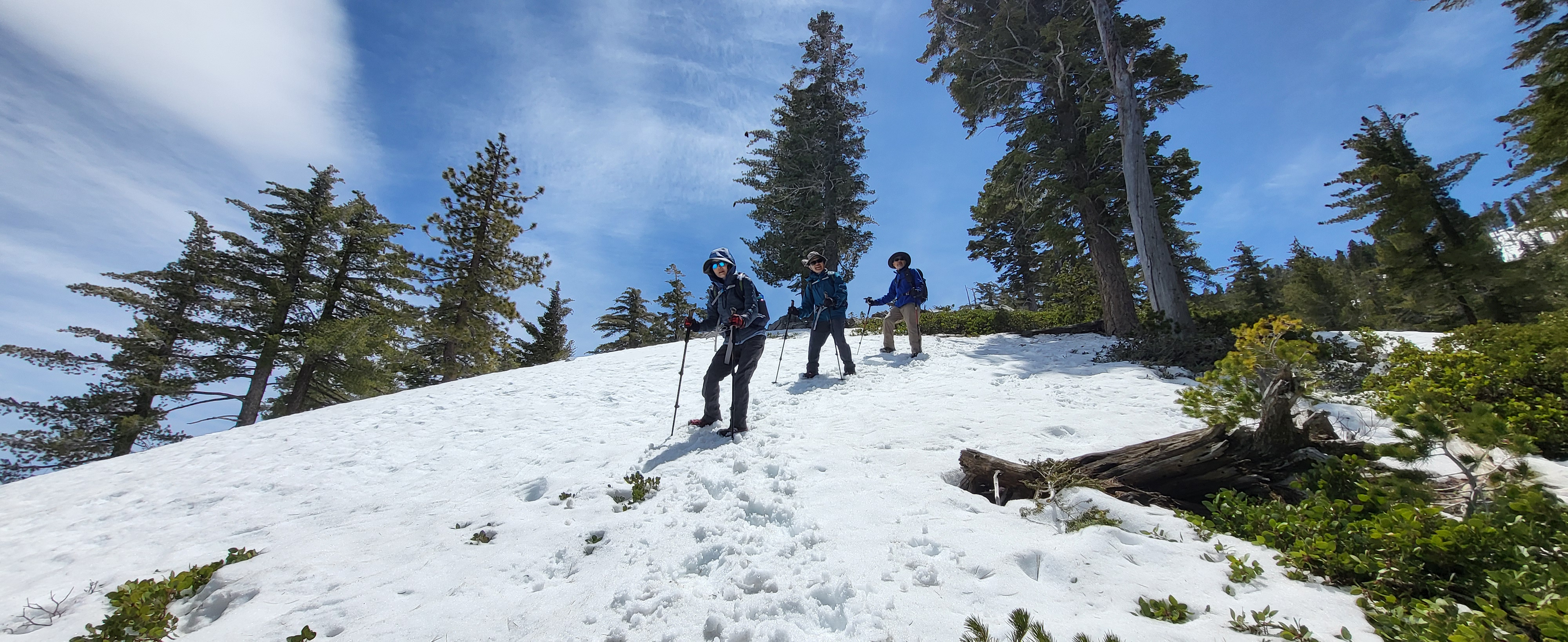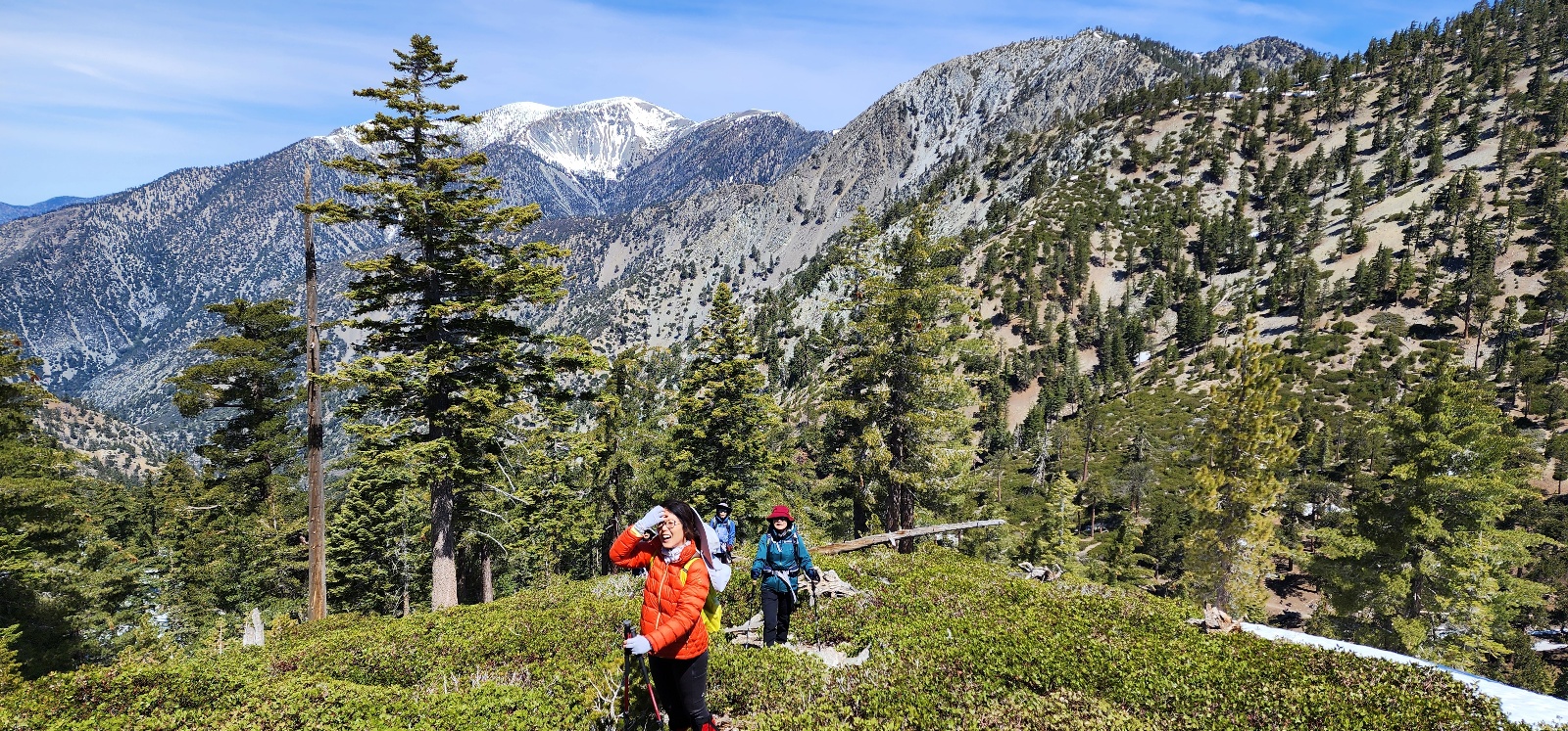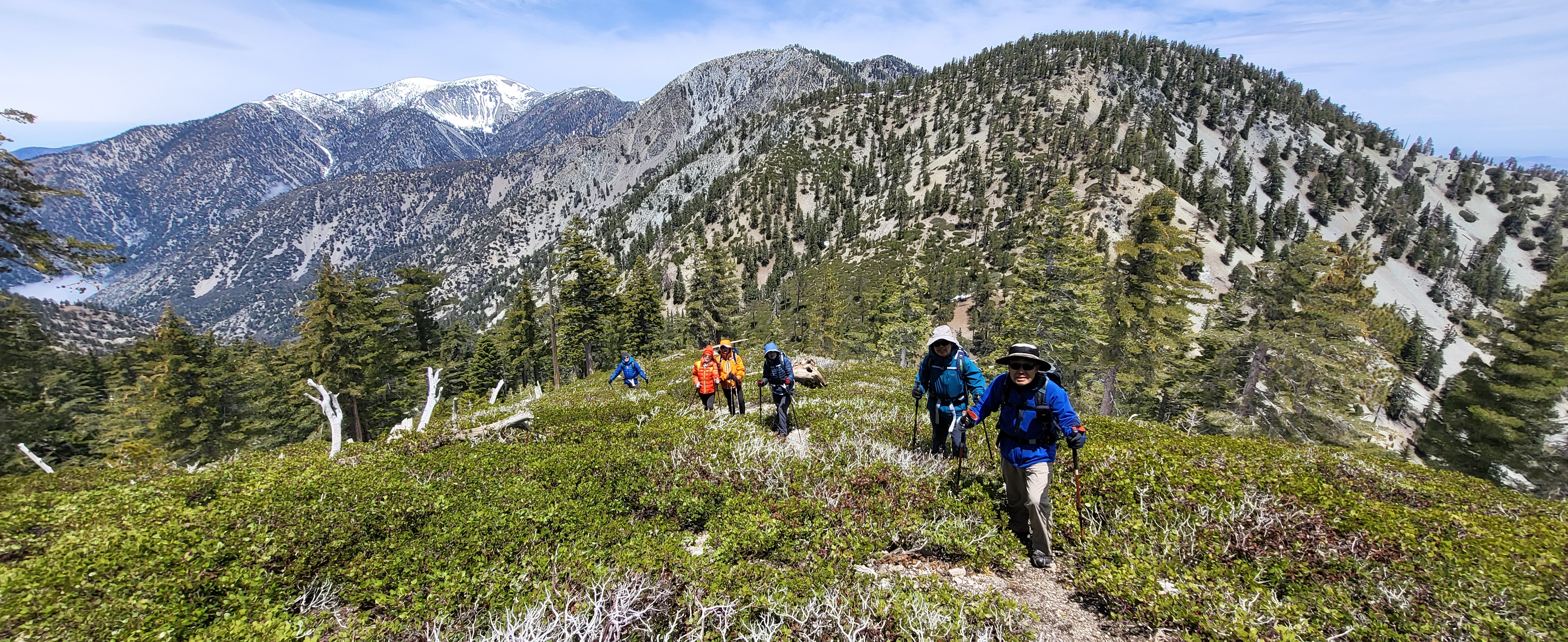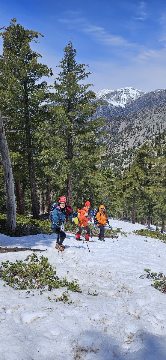 09:50 Saddle에 도착. 15분간 바람을 피해 휴식하고, 아직도 Bighorn 은 눈이 많아보인다 거센바람을 피해 Kelly Camp 쪽으로 목표수정했지만 Trail이 눈으로 인해 Bighorn 직등으로 변경하여 위이성회원이 길을 만들며 오르며 하얀산행을 만끽하며 오른다.