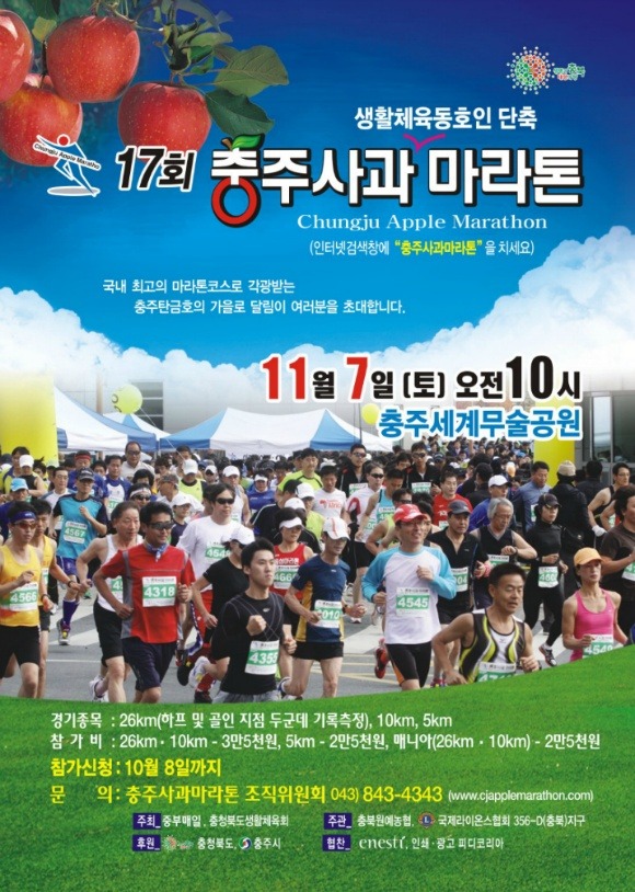 신청방법 : 홈페이지 신청( http://www.cjapplemarathon.com ), 신청마감 : 10월 8일
