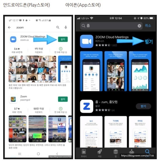 초보자이신 분들을 위해 스마트폰으로 줌 어플을 설치하고