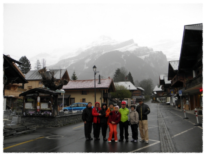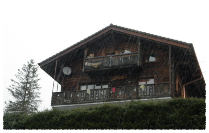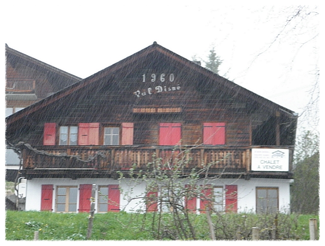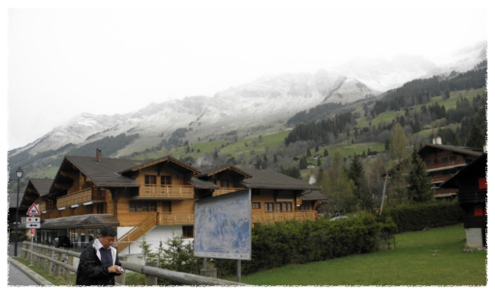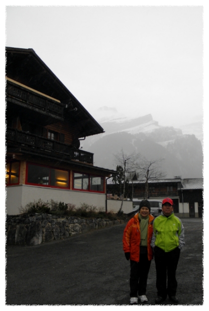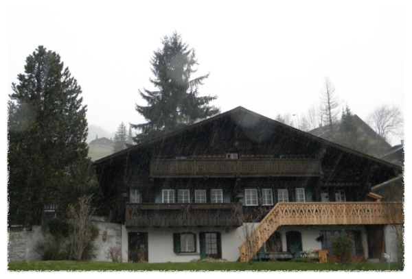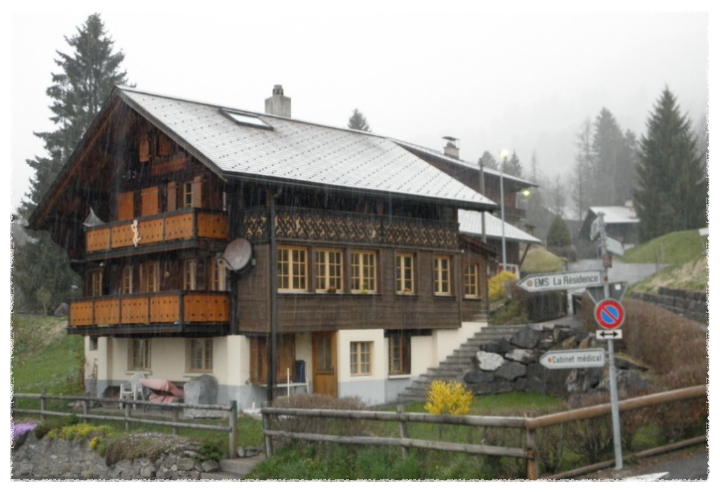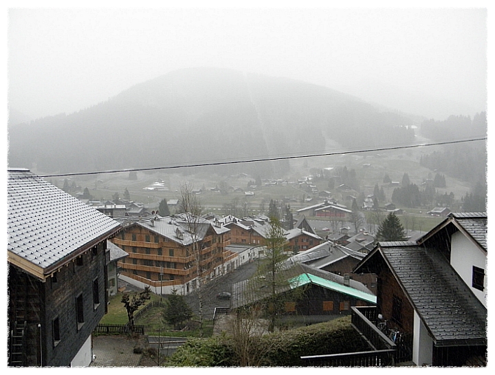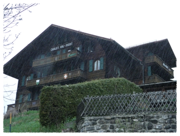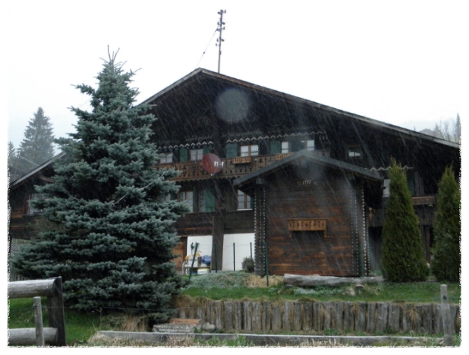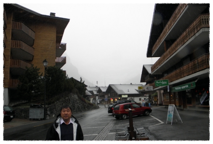 멀리 알프스 산이 보이는 마을에서 저녁을 먹고 아침일찍 일어나보니 눈보라가 치고 있더군요.