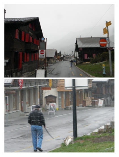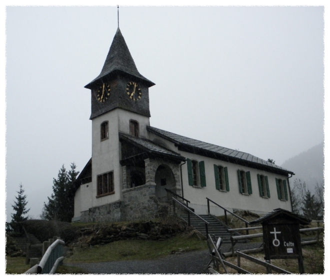 마을의 교회와 건물(샬레)들...