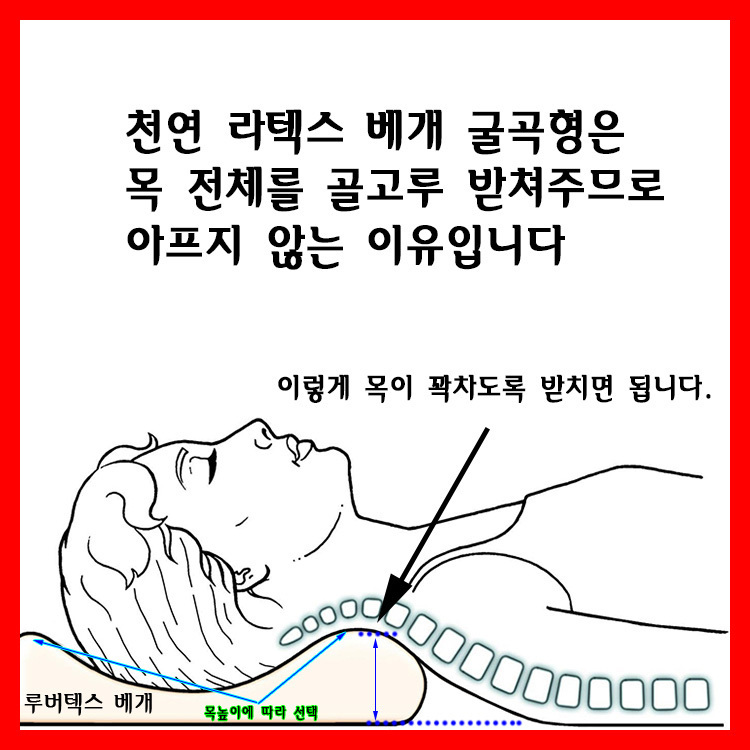 목이 불편하시면 라텍스 베개 중에서도 굴곡형 베개를 사용하시면 불편한 목이 며칠 내로 좋아질 것입니다.