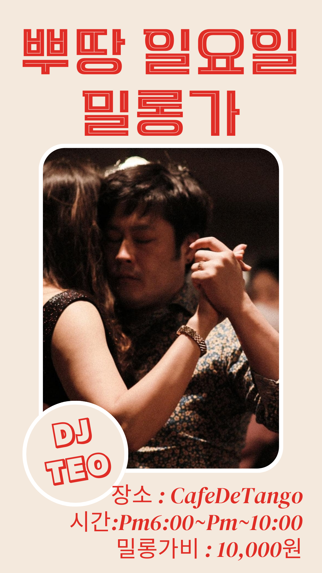 [뿌땅정모밀롱가]2023년 5월 21일 뿌에르또 땅고 밀롱가 - DJ 테오 작성자웅이|작성시간23.05.19|조회수163 목록 댓글 1 글자크기 작게가 글자크기 크게가 2023.5. 21 일요일 PM 6:00 ~ PM 10:00장소 : 카페데땅고입장료 : 만원DJ 테오 다음검색 현재 게시글 추가 기능 열기 북마크 공유하기 신고 센터로 신고 댓글 댓글 1 댓글쓰기 답글쓰기 댓글 리스트 작성자gonny | 작성시간 23.05.20 테오님 디제이군요. 기대 한가득안고ㅎ 정모 참석합니다^^ 댓글 전체보기