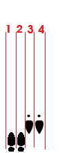 ; 땅게라의 오른발 바깥쪽(4차선)으로 전진했다가 땅게라에게 다른 리드 없이 2차선으로 되돌아오는 남자 스텝.