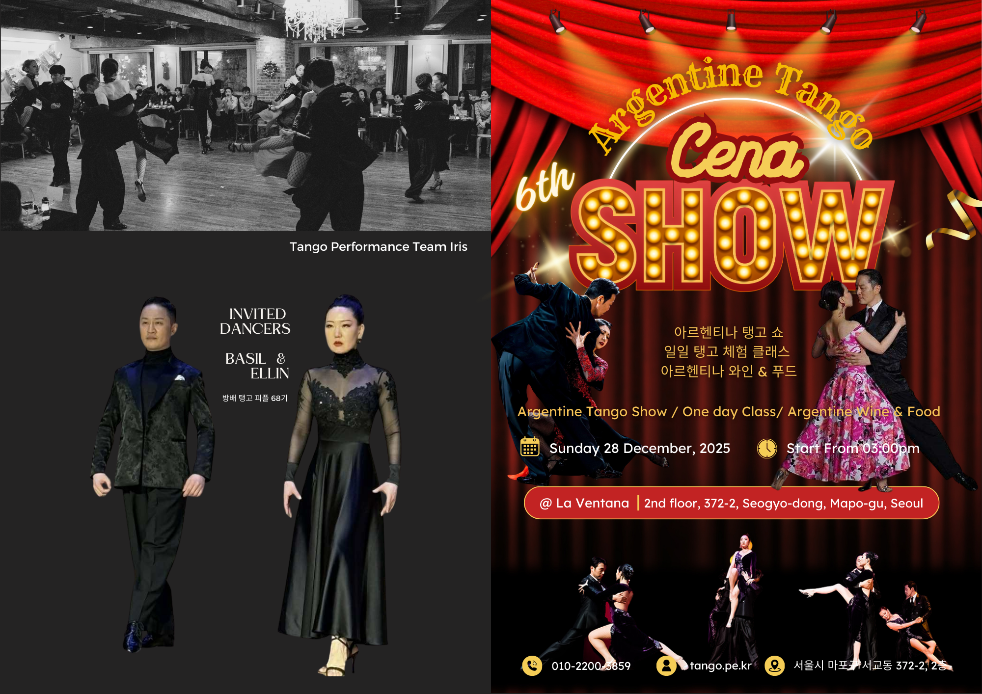 [스크랩] 특별한 탱고 문화 체험!! 라 벤따나 6차 정기 땅고 쎄나 쇼~~!! 2025.12.28(일) @ 라 벤따나 3 pm~