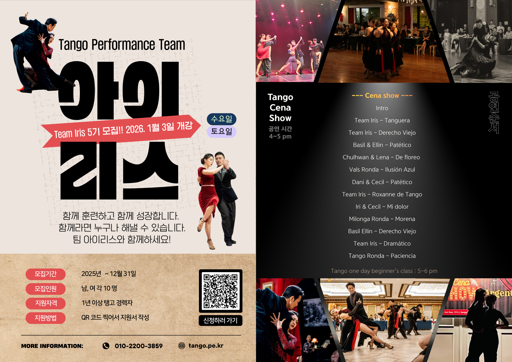 그 열망을 안고 2023년 9월, 탱고 퍼포먼스 팀 아이리스가 출범하였습니다.