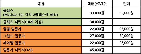 * 위 신청하러 가기를 클릭하면 등록시스템에 바로 접속하여 등록이 진행됩니다. 등록을 마친 후 아래 계좌에 입금을 하셔야만 등록(예매)이 완료됩니다. 예매는 7월19일(일)까지이며, 이 후에는 현매가가 적용됩니다.