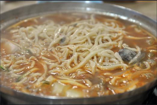 바지락 육수에 즉석에서 끓여 먹는 칼국수 전문점