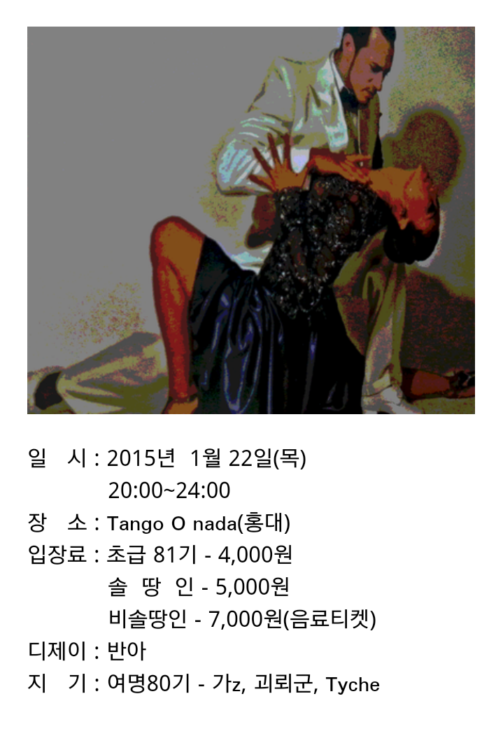 여명80기와 함께하는 네번째 목초밀 입니다 작성자Tyche(여명80기)|작성시간15.01.20|조회수505 목록 댓글 29 글자크기 작게가 글자크기 크게가 땅고 음악을 듣는것 만으로도땅고를 추는 상상 만으로도 이미 최고의 땅게로스가 아닐까 합니다만~목요일은~ 심장의 울림을 따라 오나다로 오세요^♡^ 다음검색 현재 게시글 추가 기능 열기 북마크 공유하기 신고 센터로 신고 댓글 댓글 29 댓글쓰기 답글쓰기 댓글 리스트 작성자설아(훈훈76기) | 작성시간 15.01.22 심장의 울림을 따라 갈께요 ~~~~ㅋ 답댓글 작성자Tyche(여명80기) 작성자 본인 여부 작성자 | 작성시간 15.01.22 감사합니다~~문앞에서 기다리겠습니다~^^ 작성자미미(훈훈76) | 작성시간 15.01.22 어머 디제이가 반아님이건 가야해~~~~ 작성자음가도사(여명80) | 작성시간 15.01.22 빵빵빵 사들고 감~~~~~ 작성자음가도사(여명80) | 작성시간 15.01.22 빵빵빵~~~~~~사들고 감~~ 댓글 전체보기