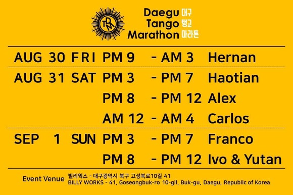 - 대구 탱고 마라톤 스케쥴 및 DJ