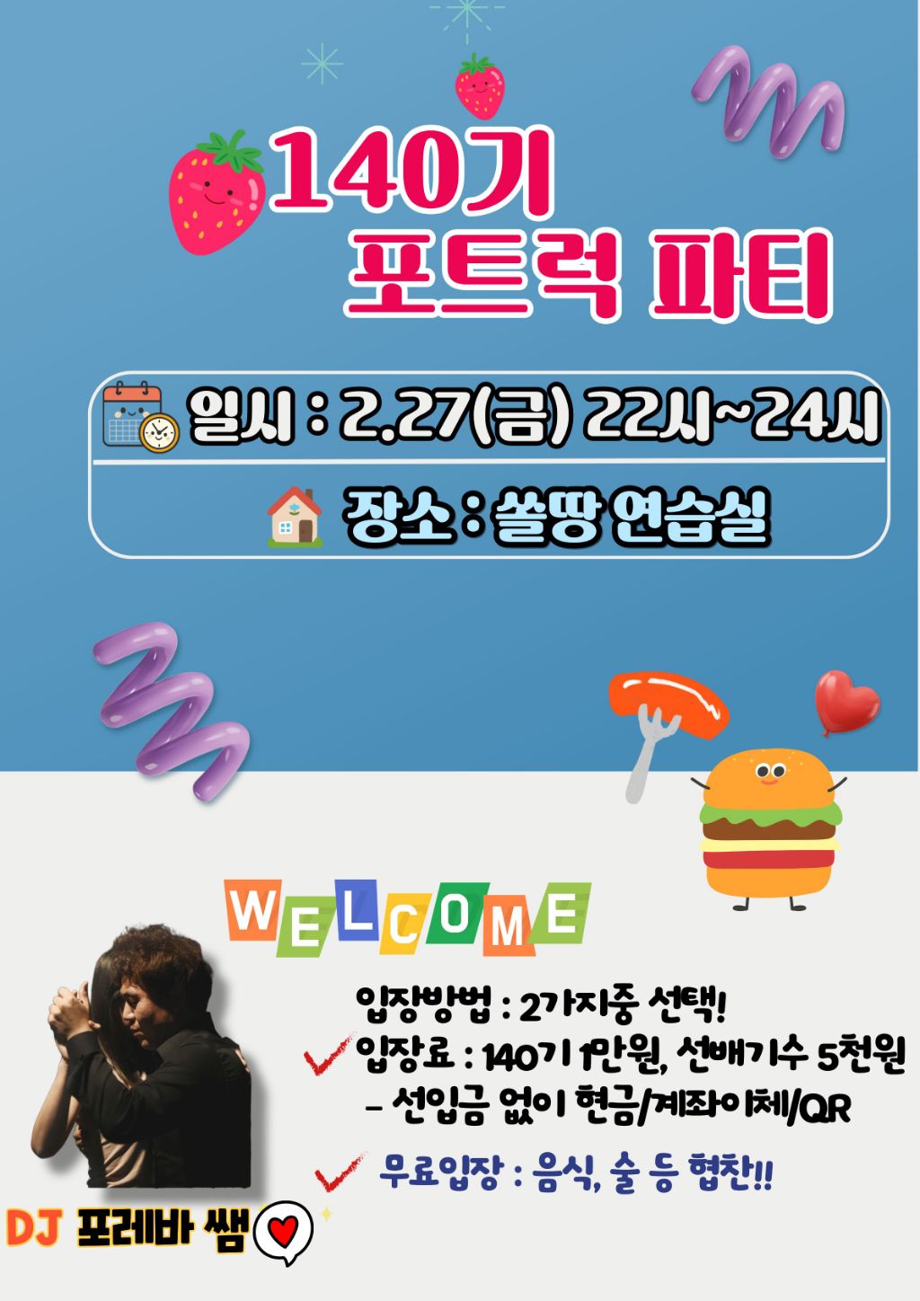 댓글로 참석유무 회비또는 음식 작성해주시면 됩니다