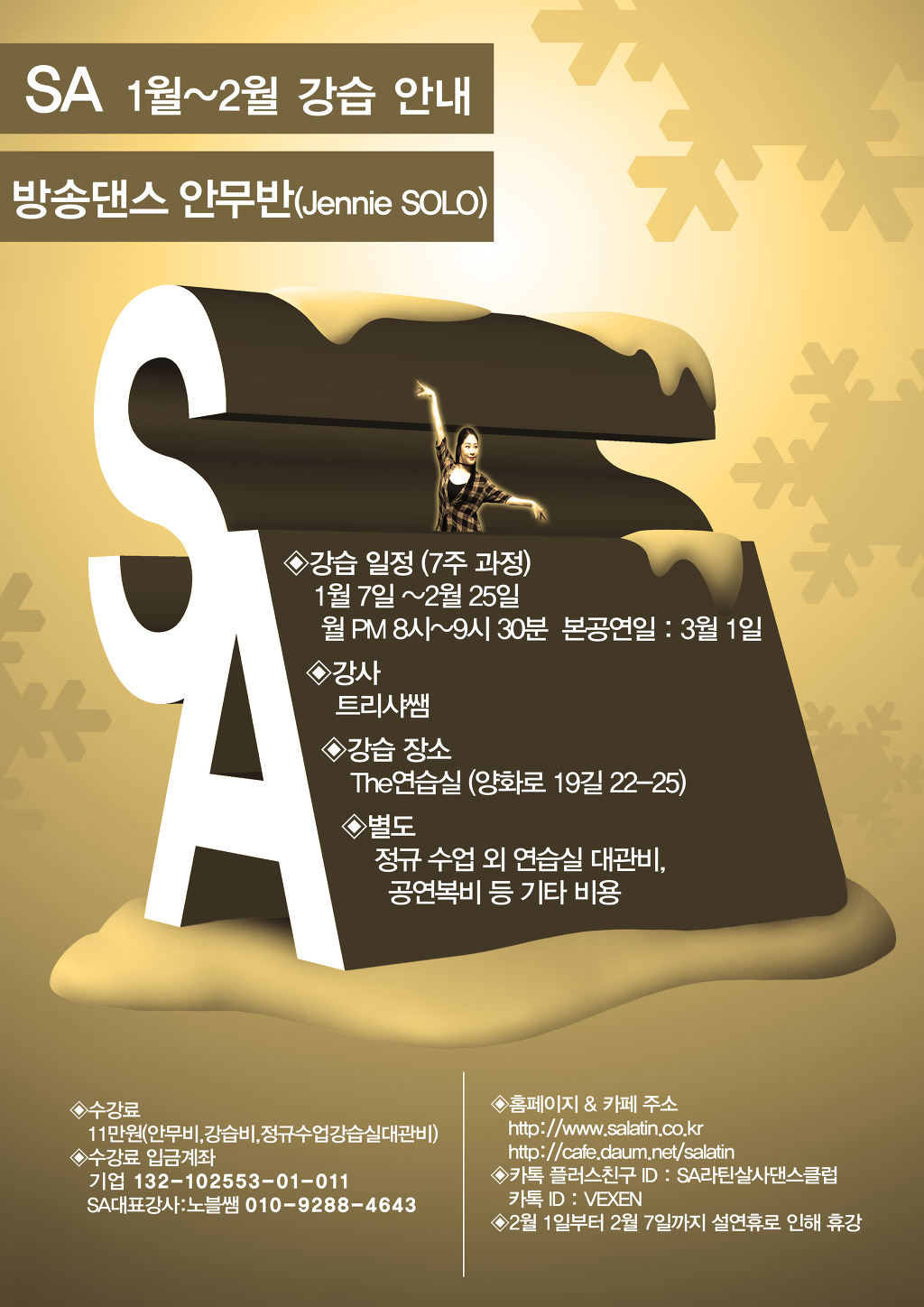 [스크랩] [홍대살사 라틴댄스 동호회 SA] 살사 바차타 중급 개설! 2인 이상 등록 50%! 차차 발표회반! Jennie-SOLO안무반!!겨울아 SA에서 저리가라!