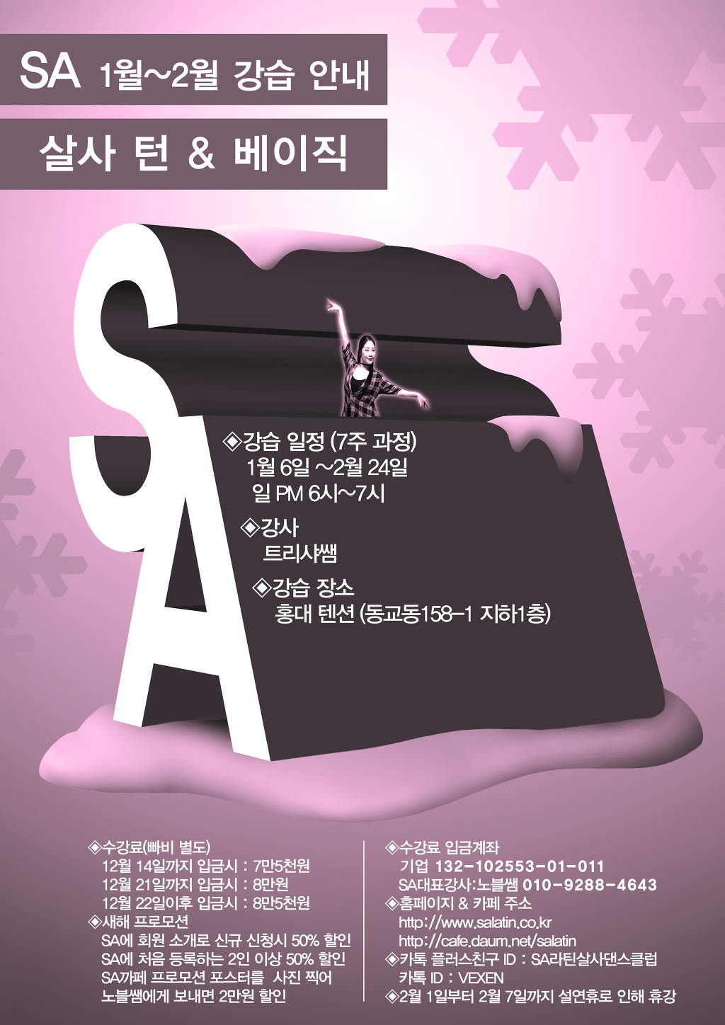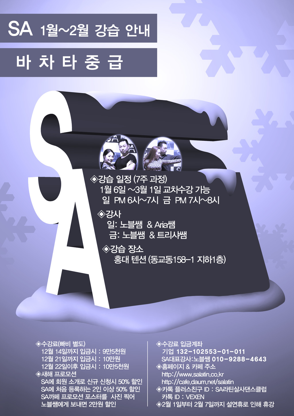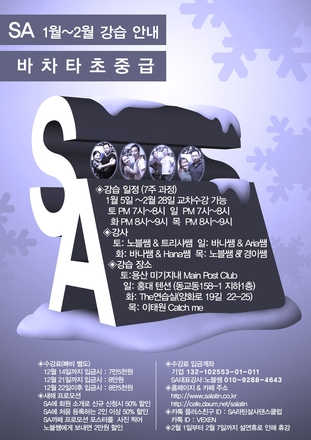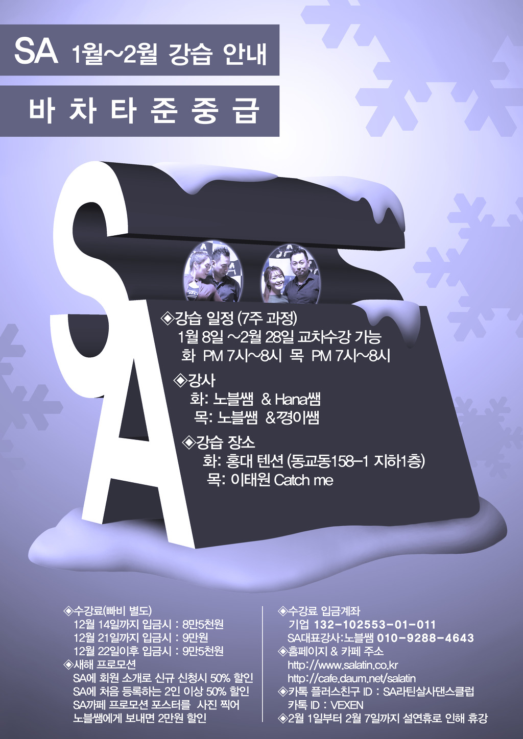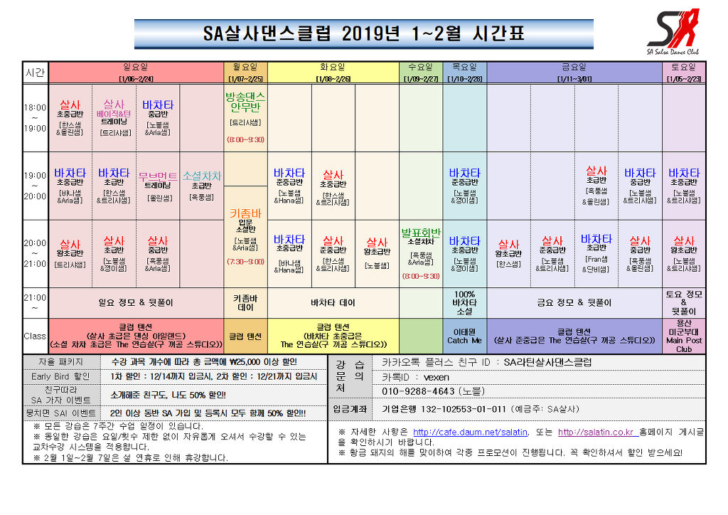 * 강습문의 : 카카오친구플러스 ID: SA라틴살사댄스클럽