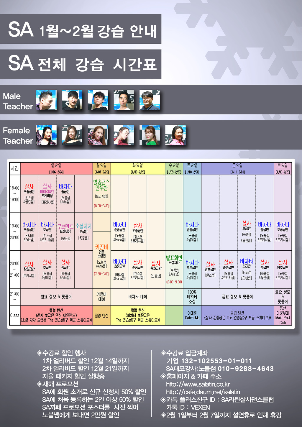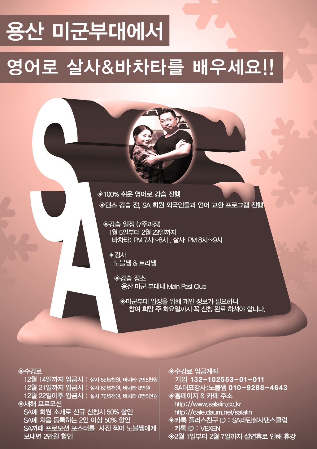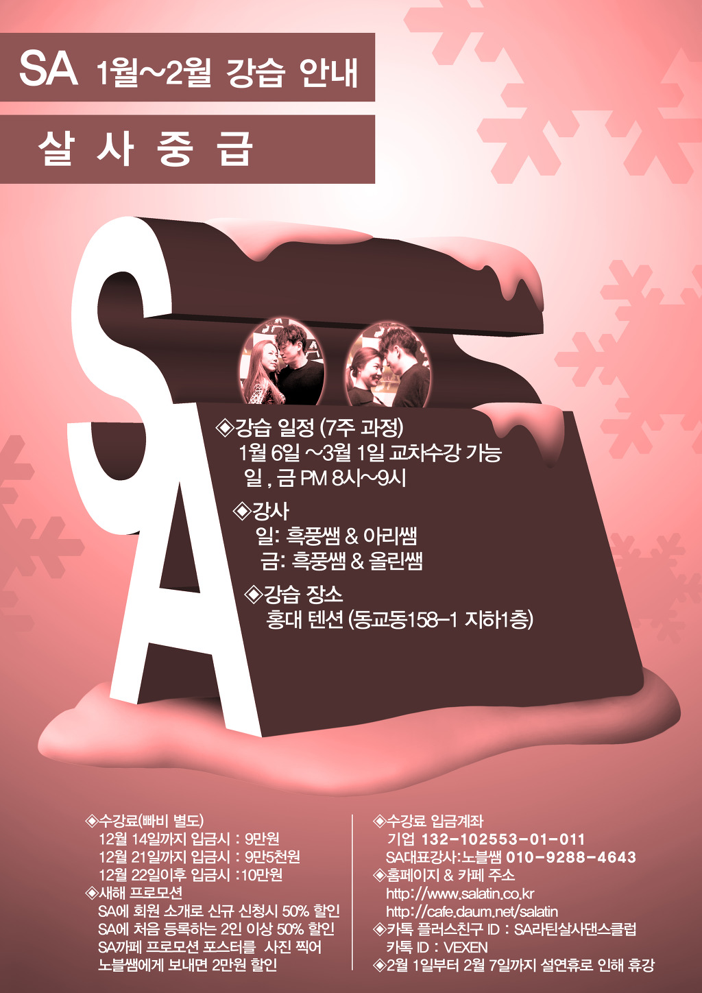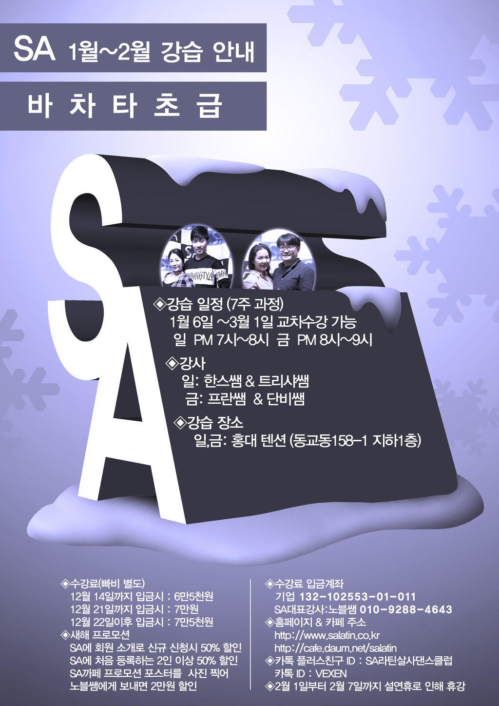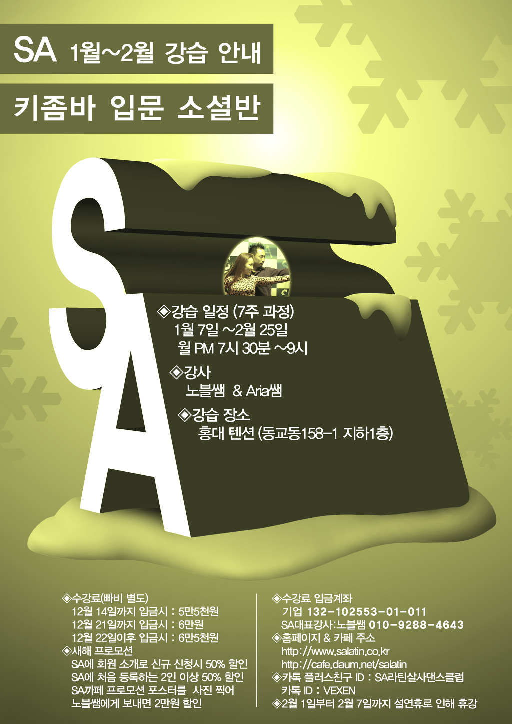 * 강습문의 : 카카오친구플러스 ID: SA라틴살사댄스클럽