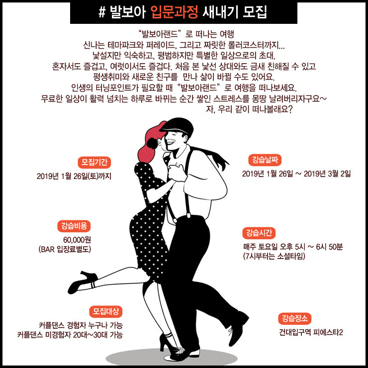 ☞ 건대입구 스윙댄스동호회 "발보아랜드" 입문반 모집(1월26일 개강)