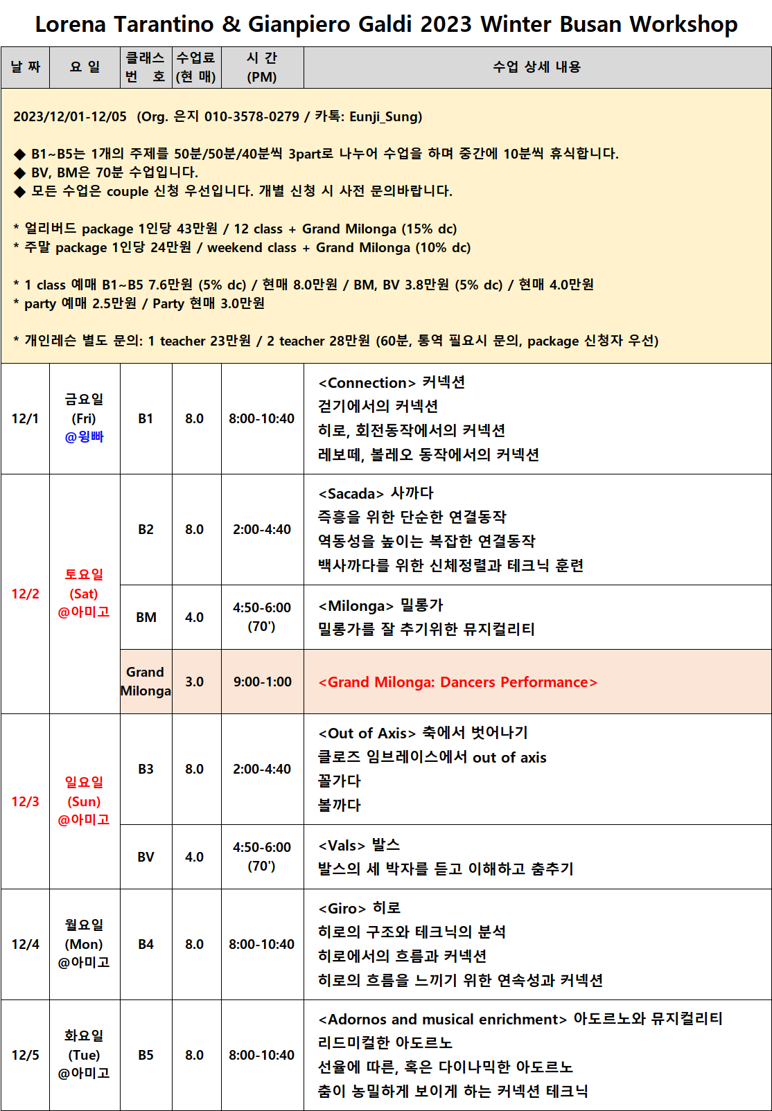 *풀팩 : 모든 수업과 그랜드 밀롱가 (15%DC)
