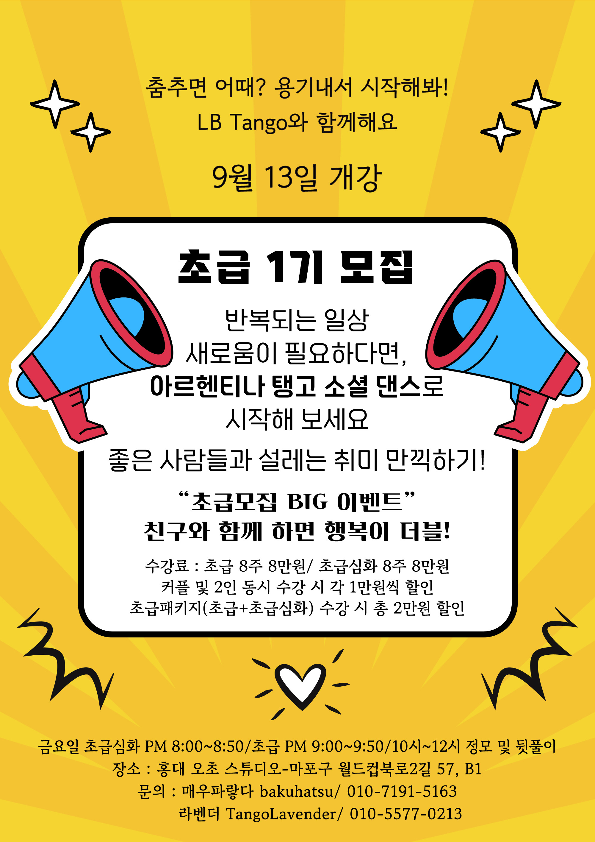 🍀수강료 : 초급 8주 8만원/ 초급심화 8주 8만원