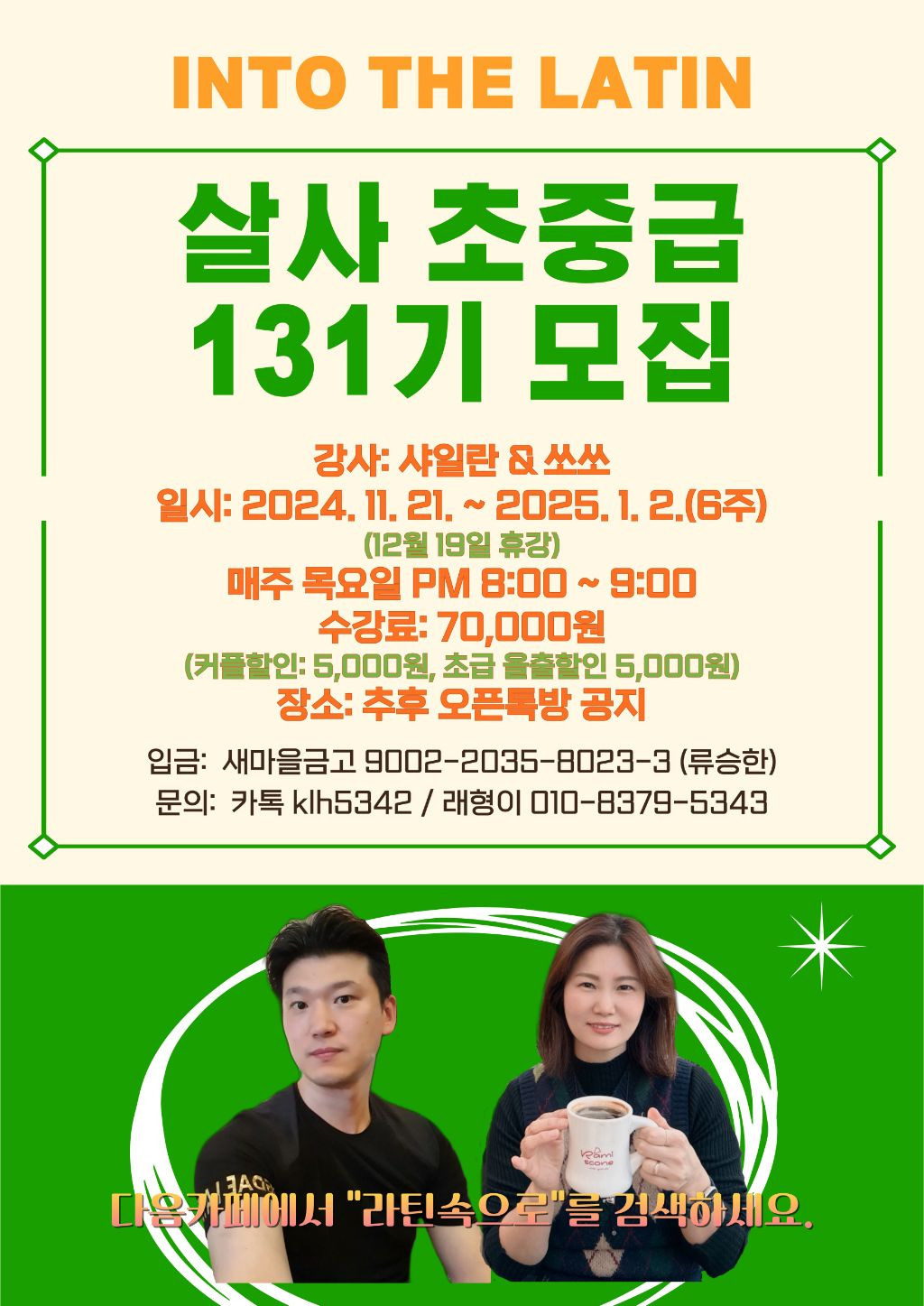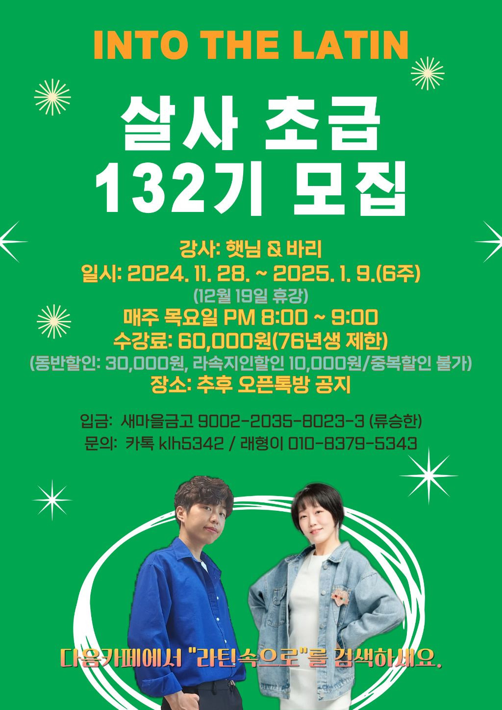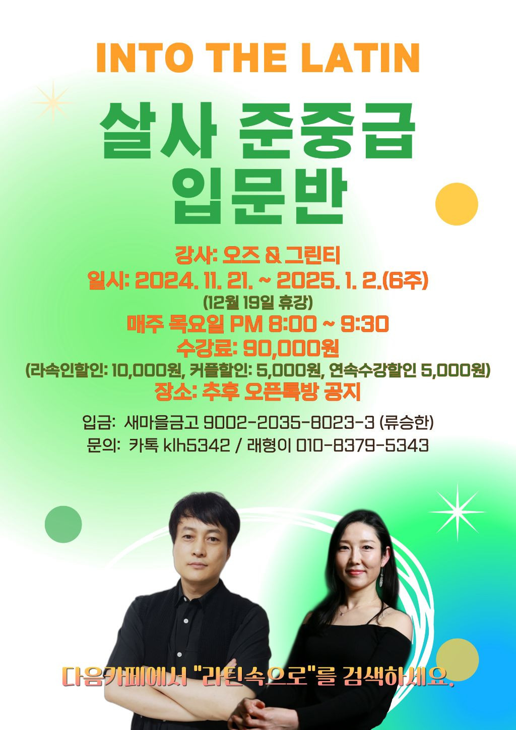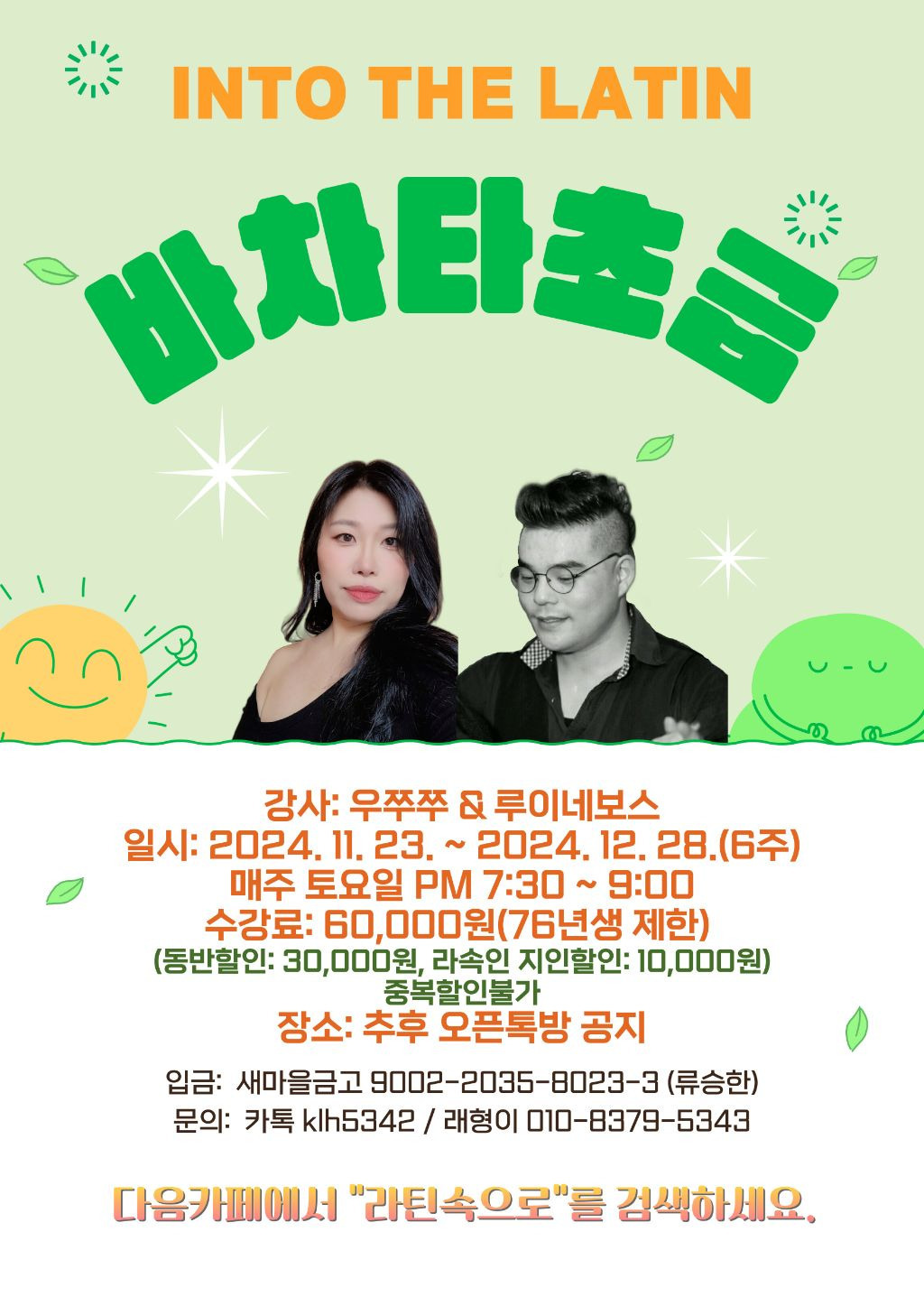 ★라틴속으로 살사/바차타 기본기&트레이닝 수업 (11일 개강)