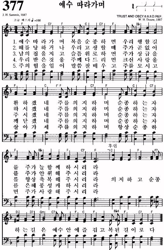 1. When we walk with the Lord In the light of His Word, What a glory He sheds on our way; While we do His good will, He abides with us still, And with all who will trust and obey. Trust and obey, For there's no other way To be happy in Jesus, But to trust and obey.