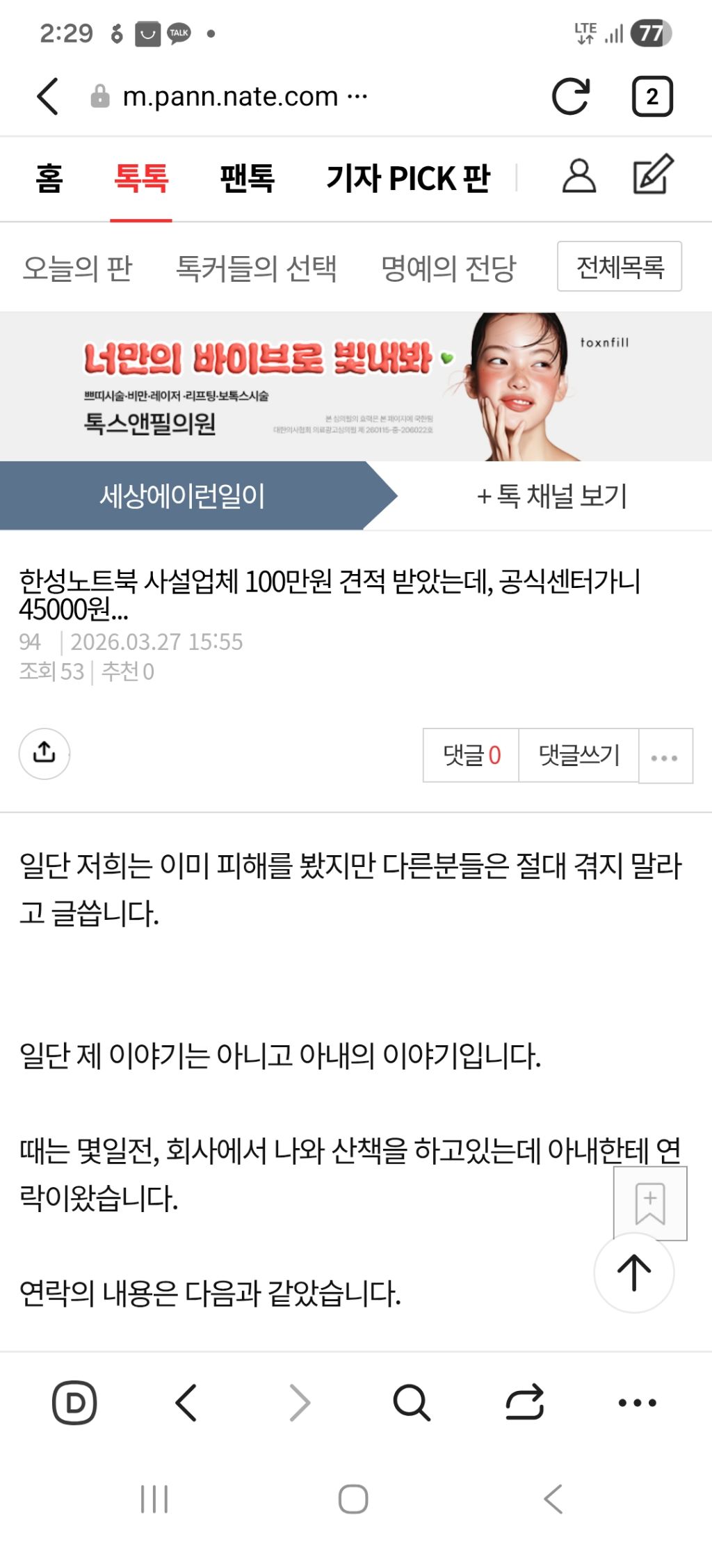 일단 저희는 이미 피해를 봤지만 다른분들은 절대 겪지 말라고 글씁니다.