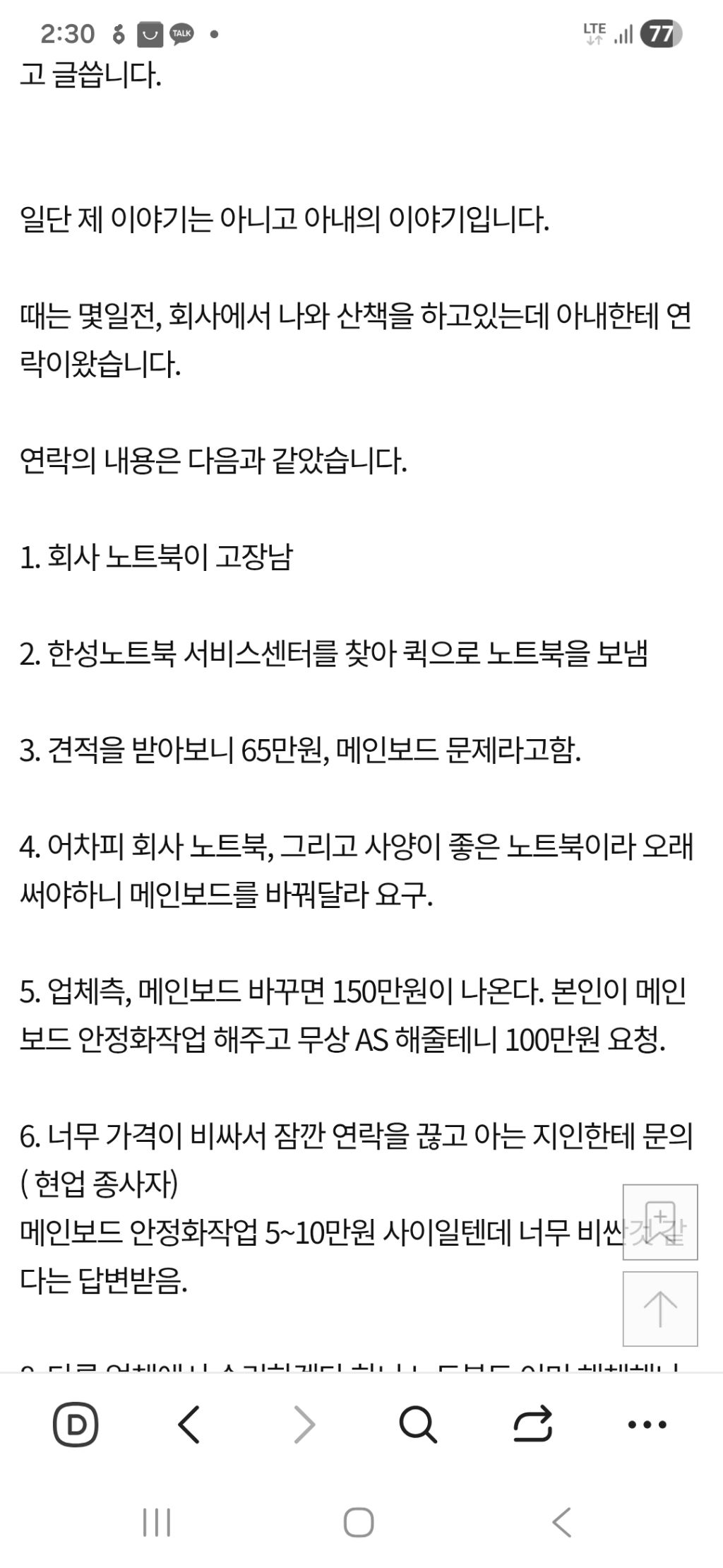 4. 어차피 회사 노트북, 그리고 사양이 좋은 노트북이라 오래써야하니 메인보드를 바꿔달라 요구.