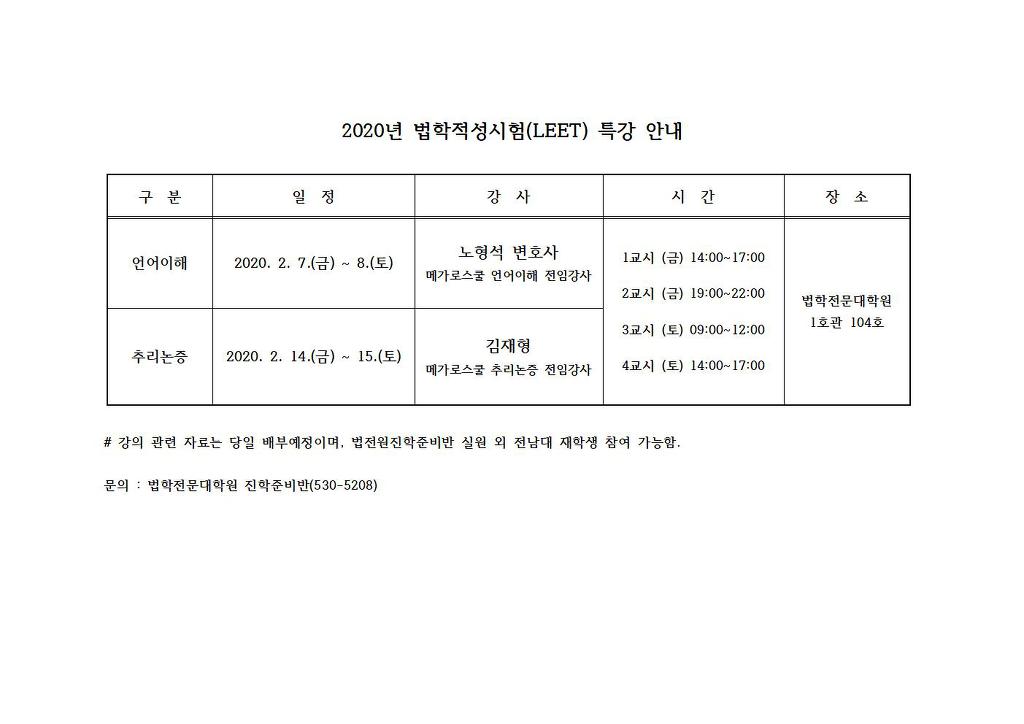 2020 법학적성시험(LEET) 특강 작성자고시원 조교|작성시간20.01.30|조회수203 목록 댓글 0 글자크기 작게가 글자크기 크게가 다음검색 현재 게시글 추가 기능 열기 북마크 공유하기 신고 센터로 신고 댓글 댓글 0 댓글쓰기 답글쓰기 댓글 리스트