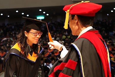 이날 학위수여식에서 수석졸업(최우등상)의 영예는, 인문계열에서는 강혜란(법학) 씨가 차지했고, 자연계열에서는 김성찬(화학) 씨가 안게 됐다. 단과대학별 우등상 수상자는 △인문대학 최은솔(영어영문) △자연과학대학 정진주(화학) △법과대학 윤소연(법학) △사회과학대학 정지혜(사회복지) △경제통상대학 정혜원(글로벌통상) △경영대학 김도윤(벤처중소) △공과대학 박진우(유기신소재파이버) △IT대학 성락민(컴퓨터) 씨다.