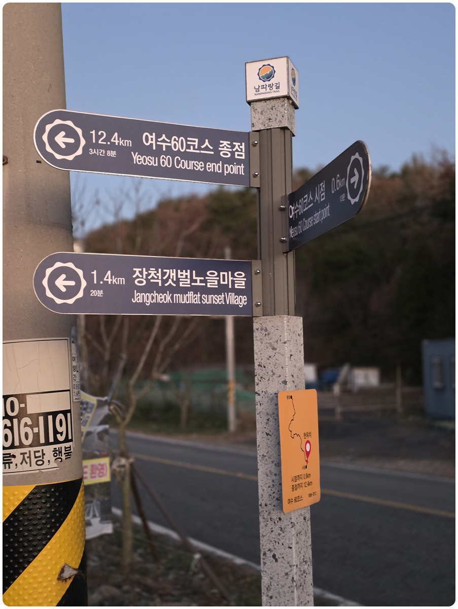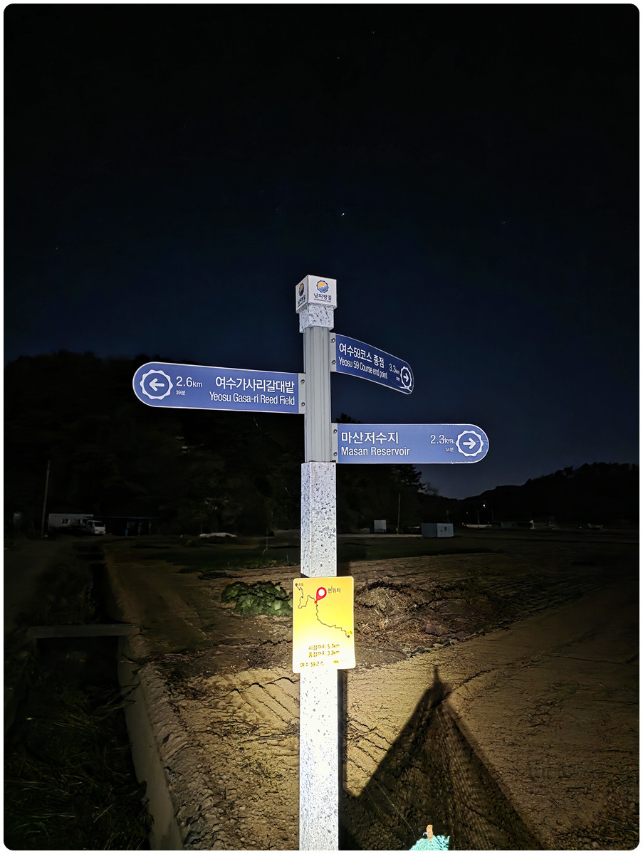 * 56코스: 원포버스정류장 - 안포마을 -여수 소호요트장 ( 14.5 ㎞ )