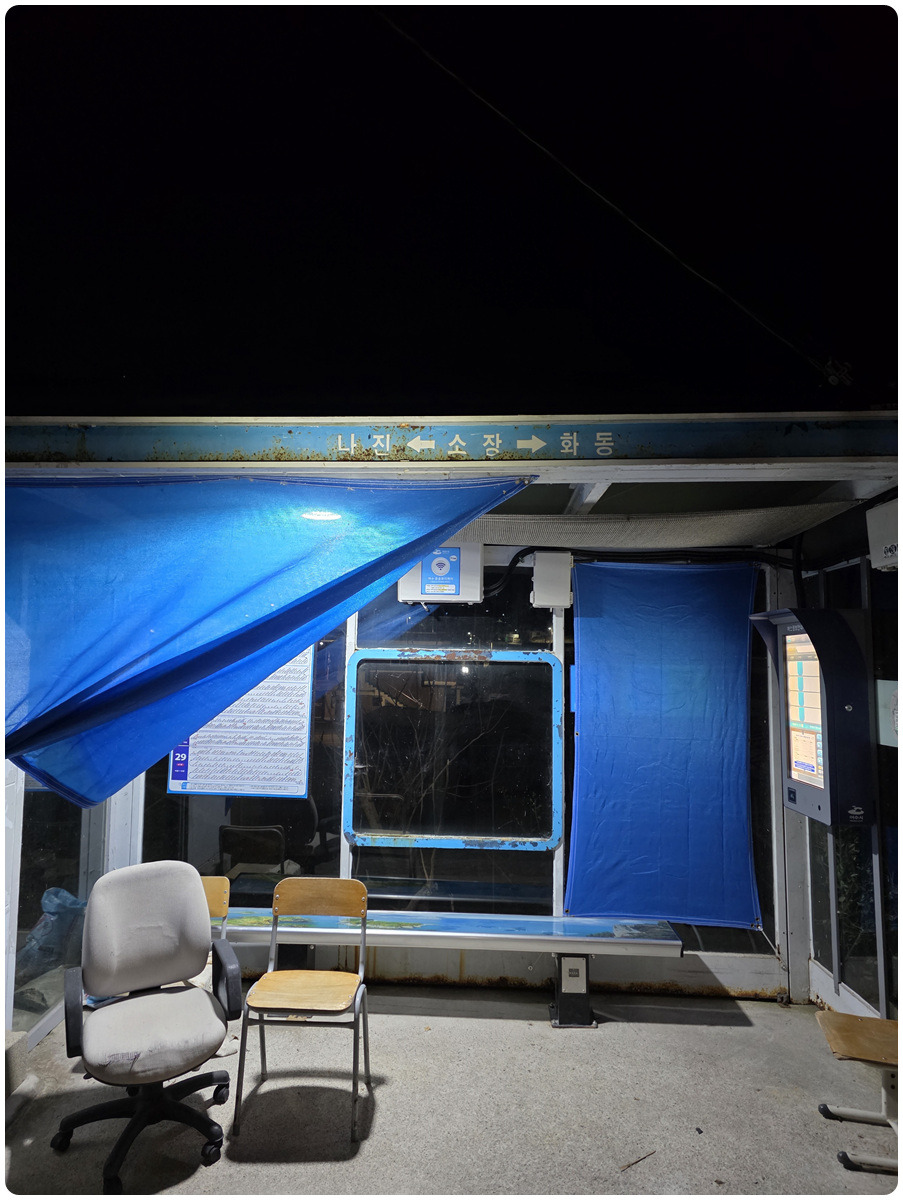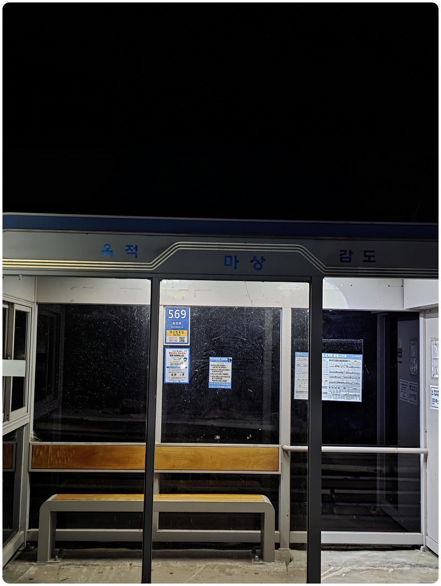 이곳에서 라면과 햇반으로 아침식사 하고 옆버스정류장