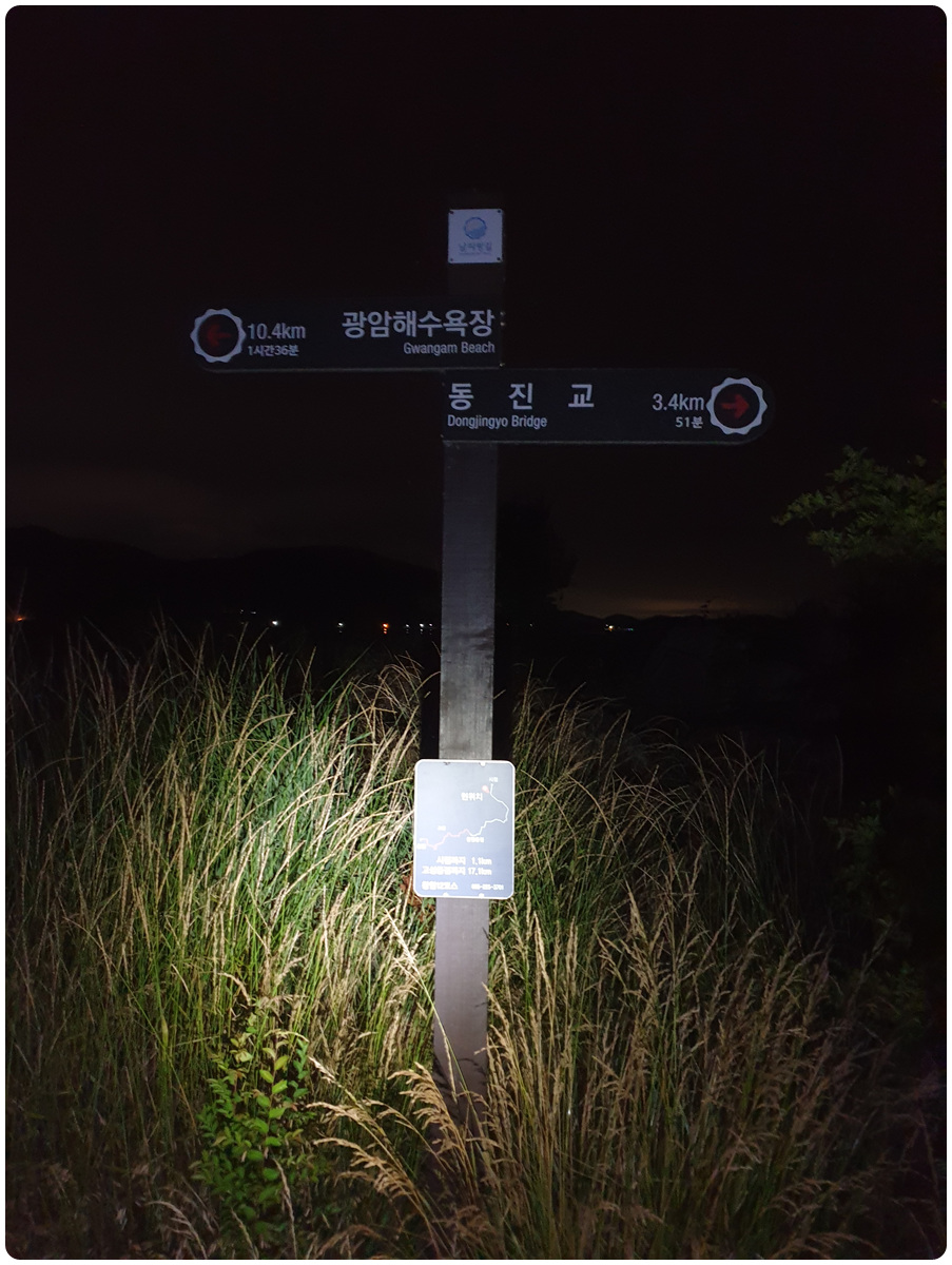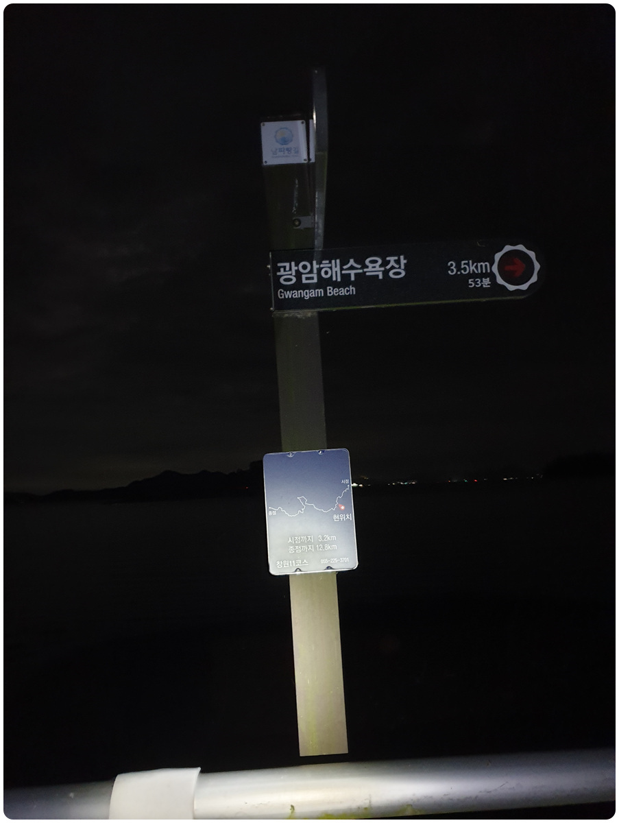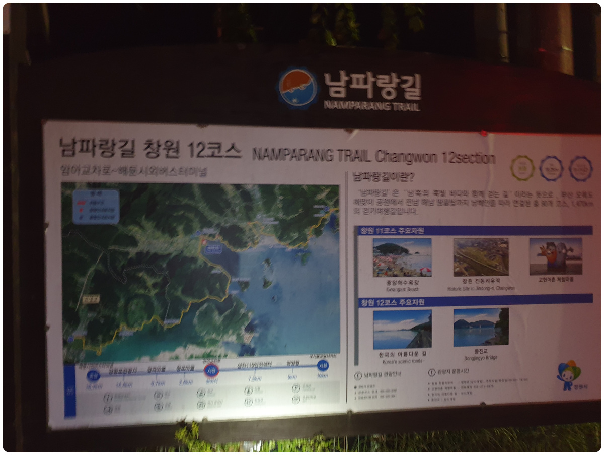 19시25분..남파랑 10코스 안내간판...14키로미터 지점