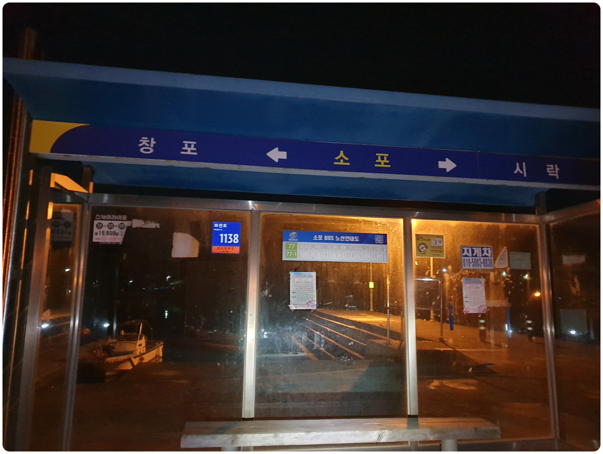 터미널 화장실에서 얼굴씻고 07시45분에 고성터미널로 가는 버스타고 08시에 고성버스 터미널에 도착