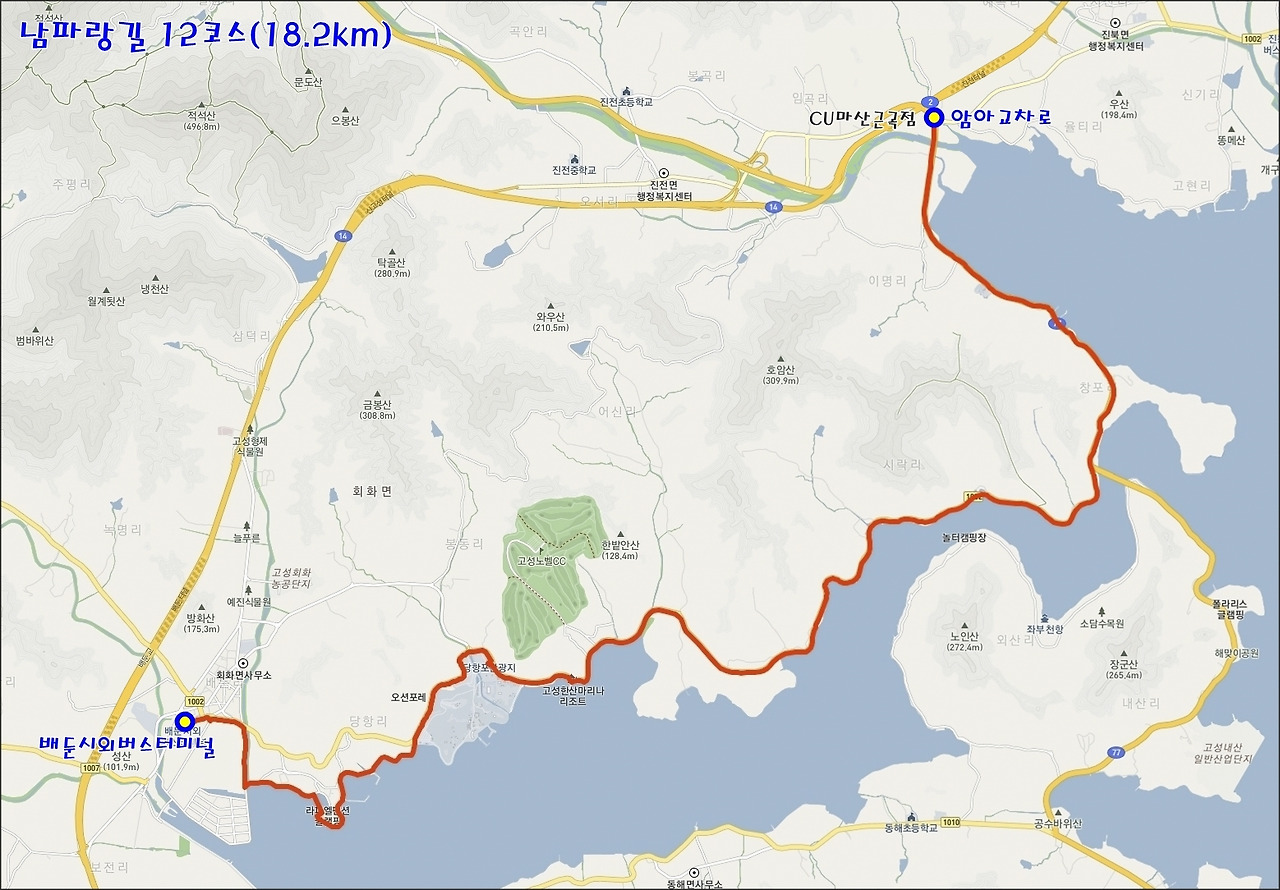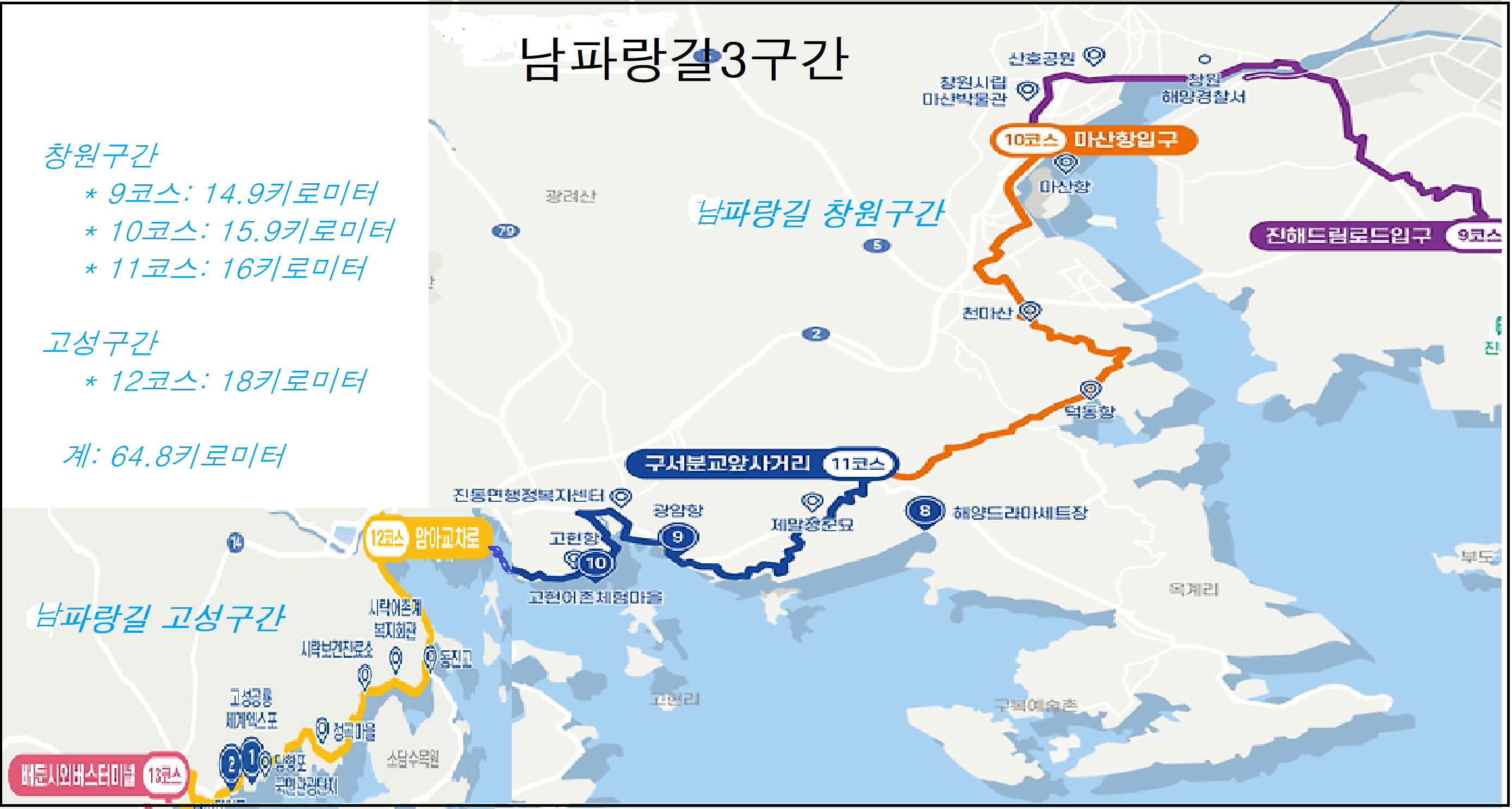 ◇ 남파랑길3구간 (창원/고성구간)( 드림로드입구 ~ 배둔시외버스 터미널 : 9코스, 10코스,11코스,12코스)