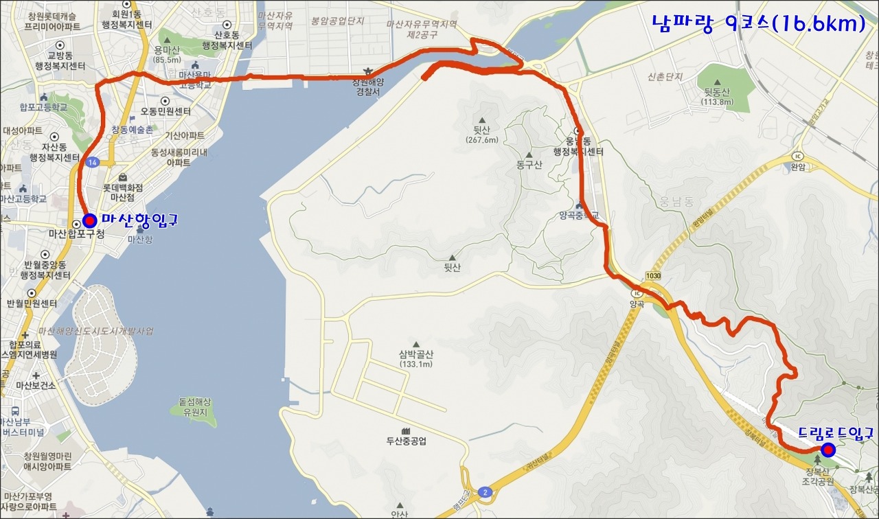 * 9코스: 진해드림로드입구-봉암교-마산항입구 (14.9㎞)