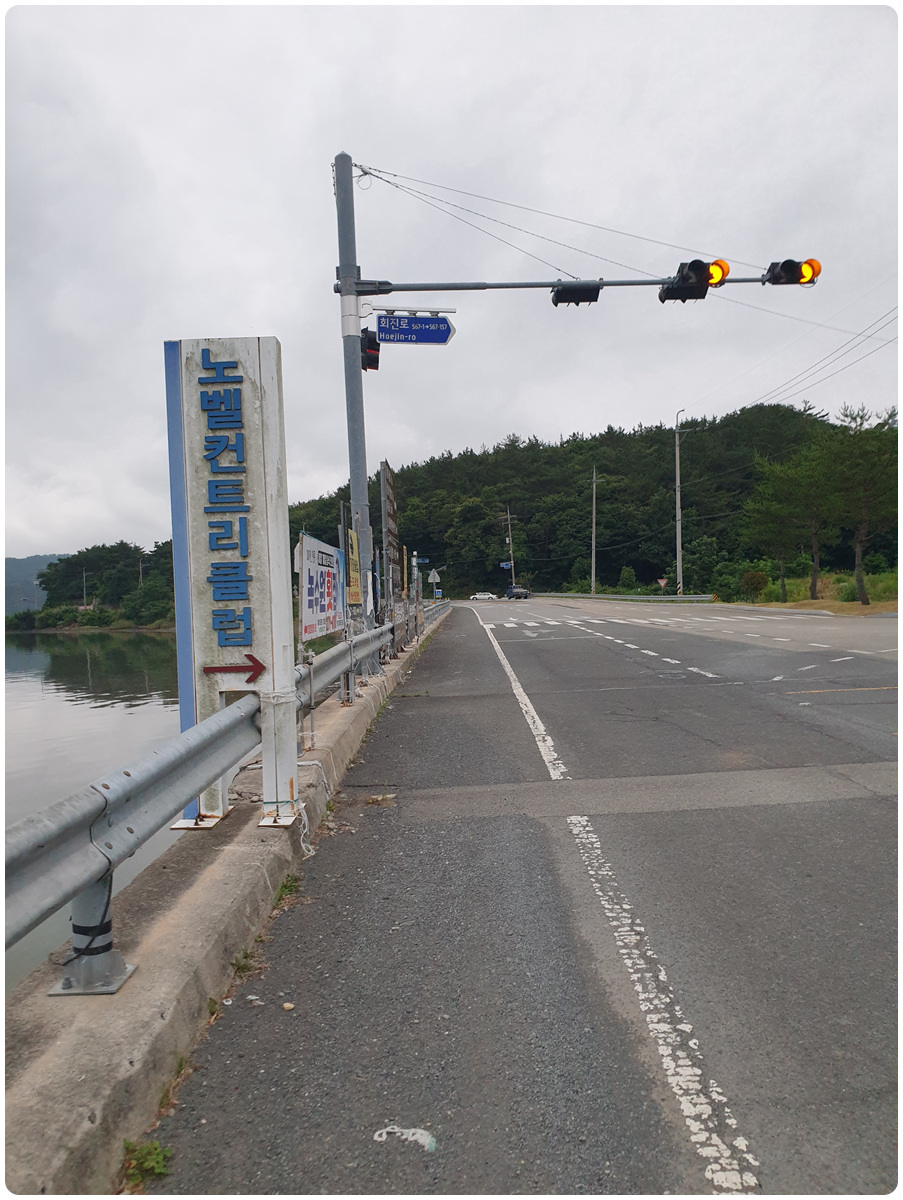 광암해수욕장10.4키로미터..동진교3.4키로미터 이정목장