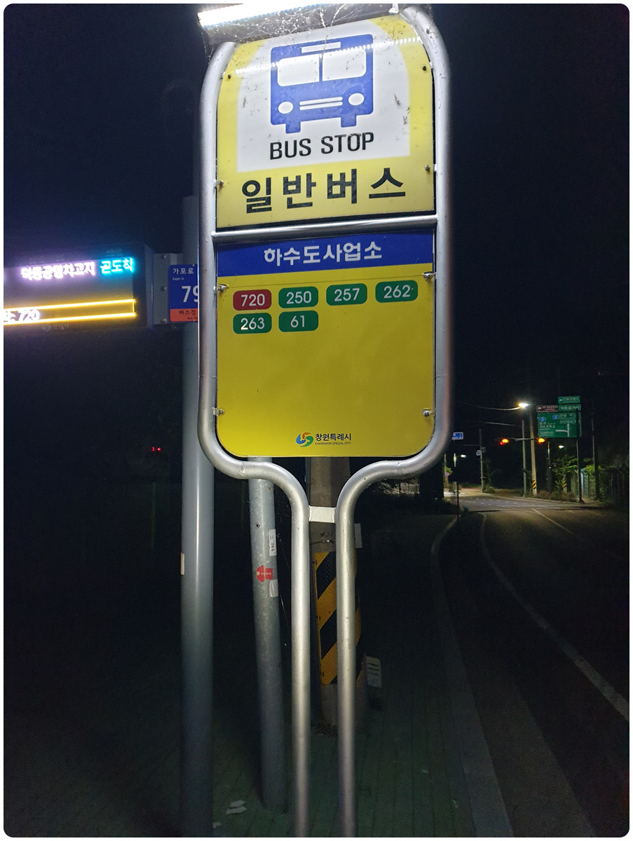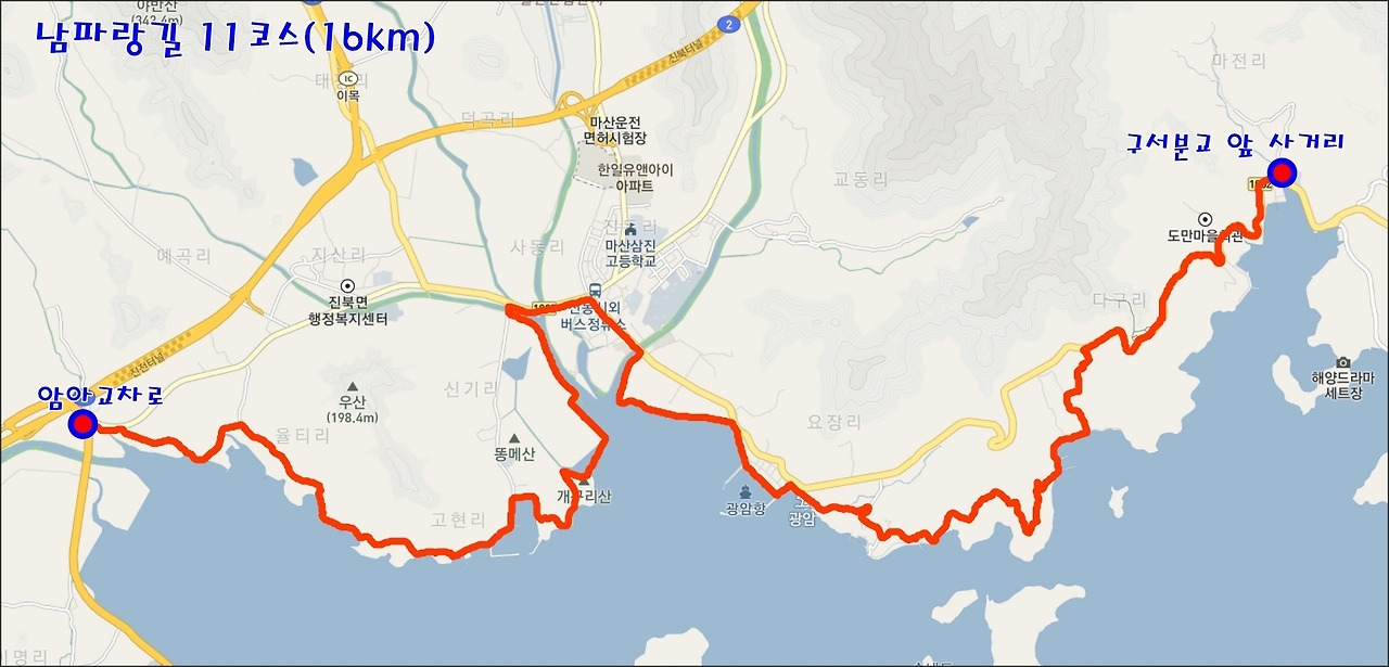 ◈ 경로: 진해드림로드입구-봉암교-마산항입구- 청양산입구-유신고개-구서분교사거리- 광암항-암아교차로-