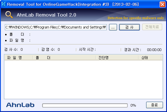 악성코드나 바이러스에 걸리게 되면 백신 프로그램 실행이 안되는 경우 바이러스 잡는 백신전용프로그램입니다