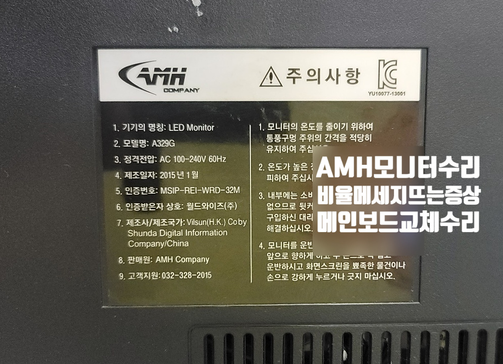 대구모니터수리/LED모니터수리/A329G/AMH모니터/4:3 FULL비율화면뜸증상/메인보드교체수리/컴퓨터수리/모니터사설수리점