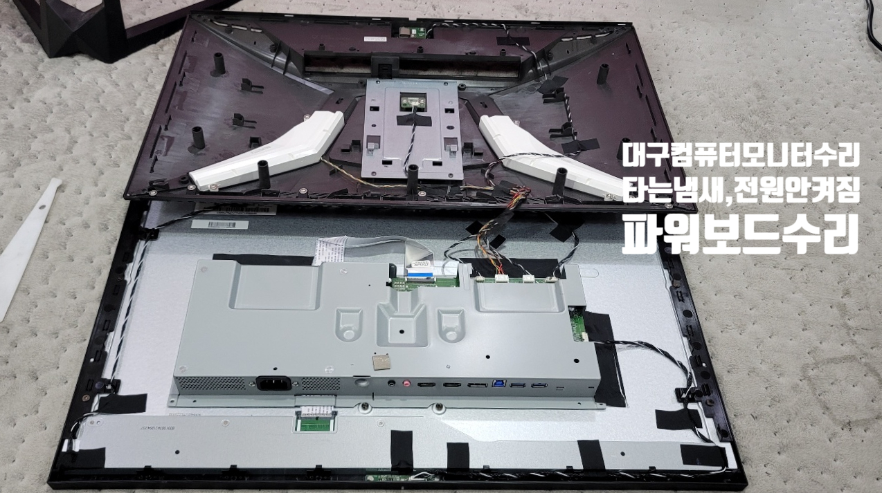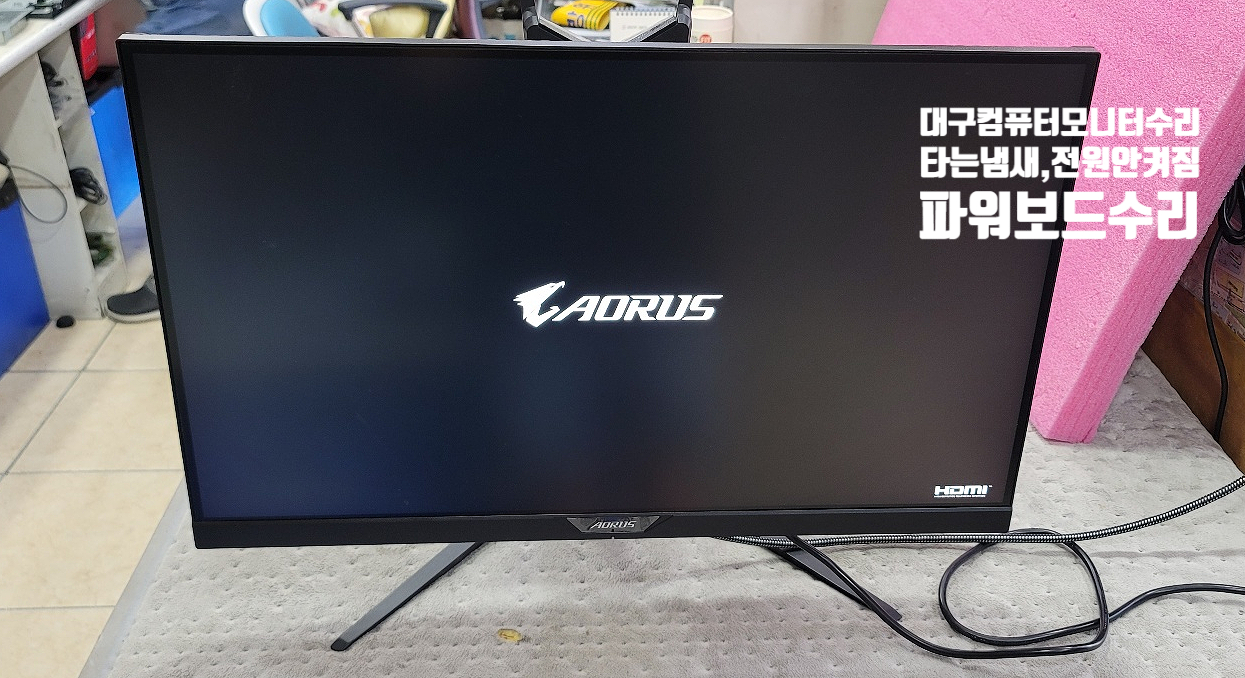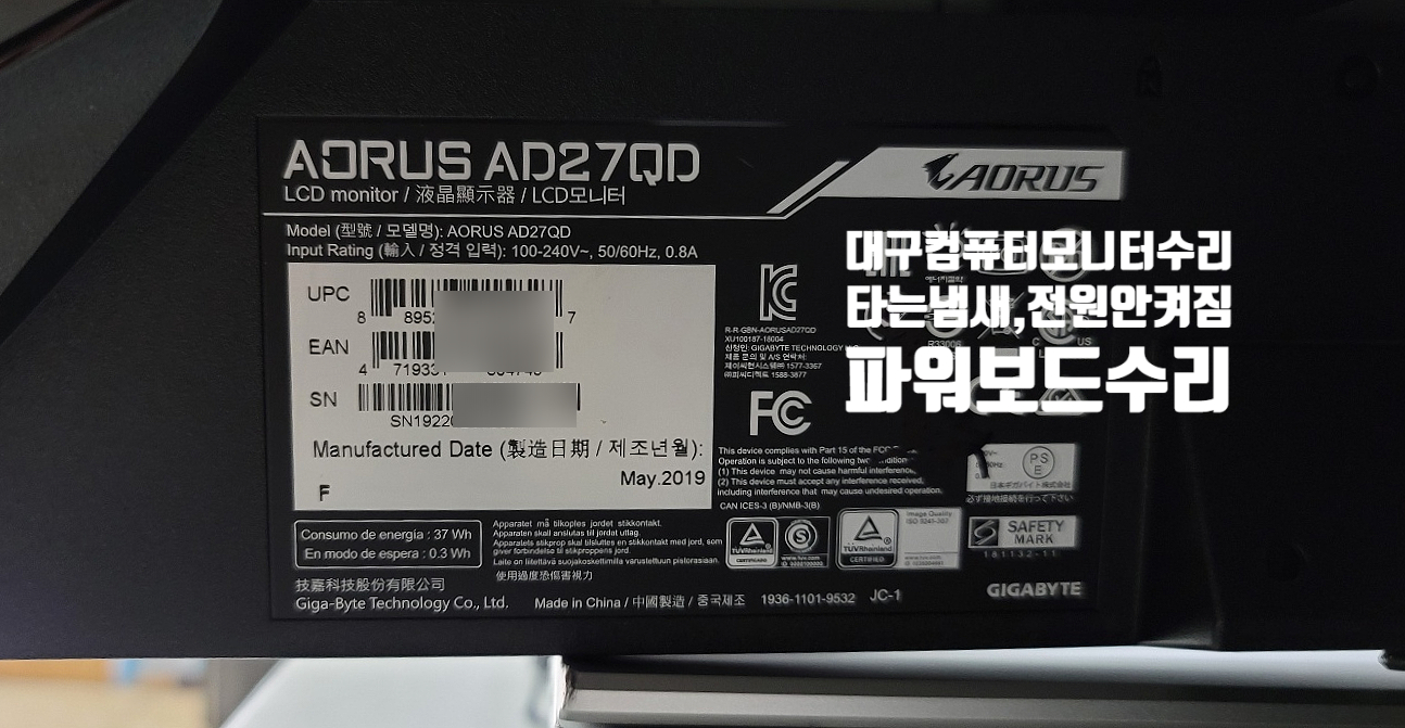 대구모니터수리- GIGABYTE Gaming 기가바이트 모니터 AORUS AD27QD 모니터에 타는 냄새난 후 전원이 안켜지는 현상
