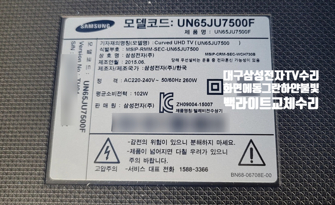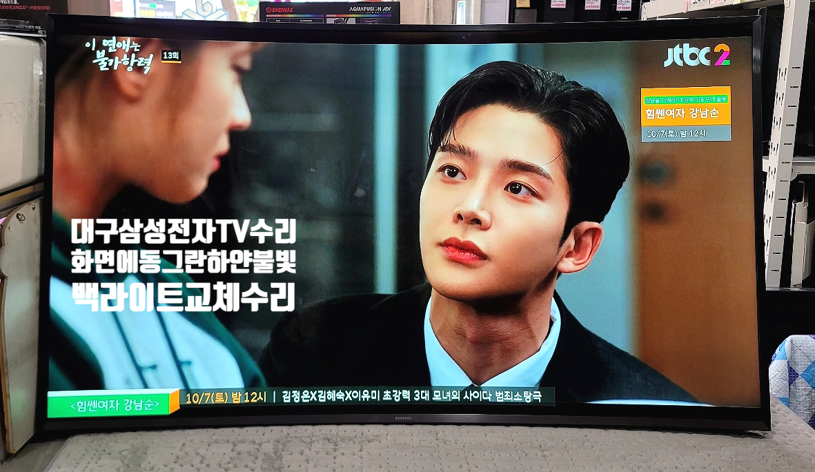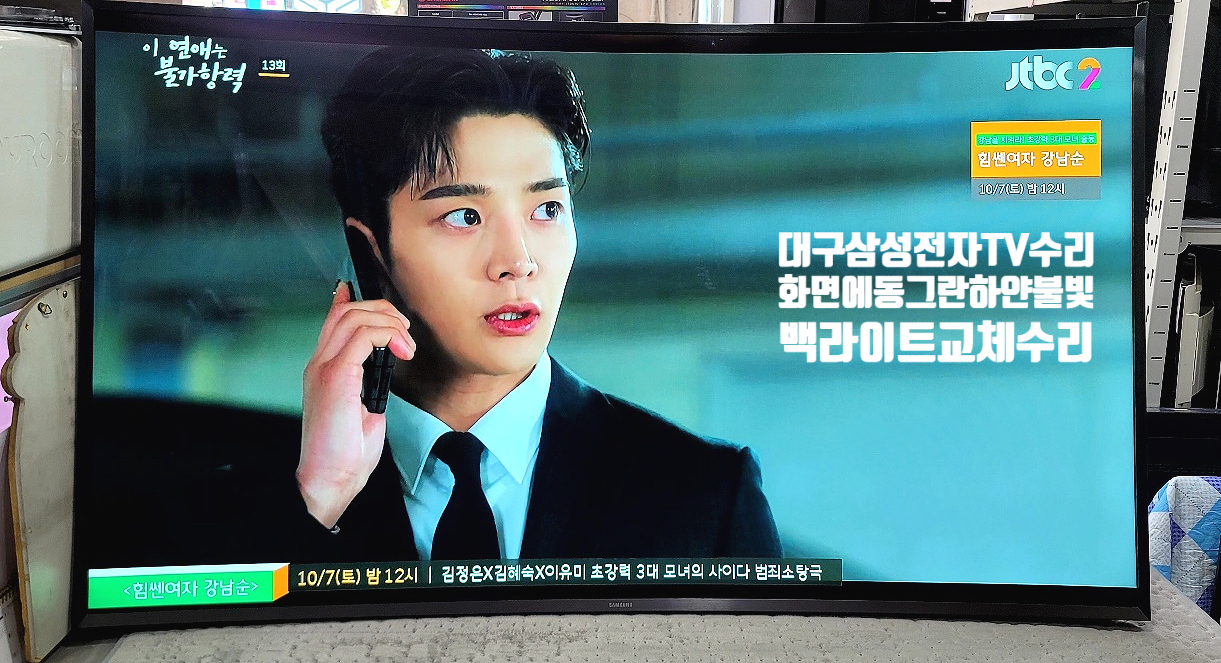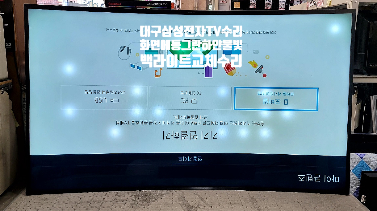 대구TV수리-삼성 UN65JU7500F 커브드 65인치 텔레비전 Curved UHD TV 화면에 동그란 흰 불빛, 렌즈모양 하얀빛샘현상