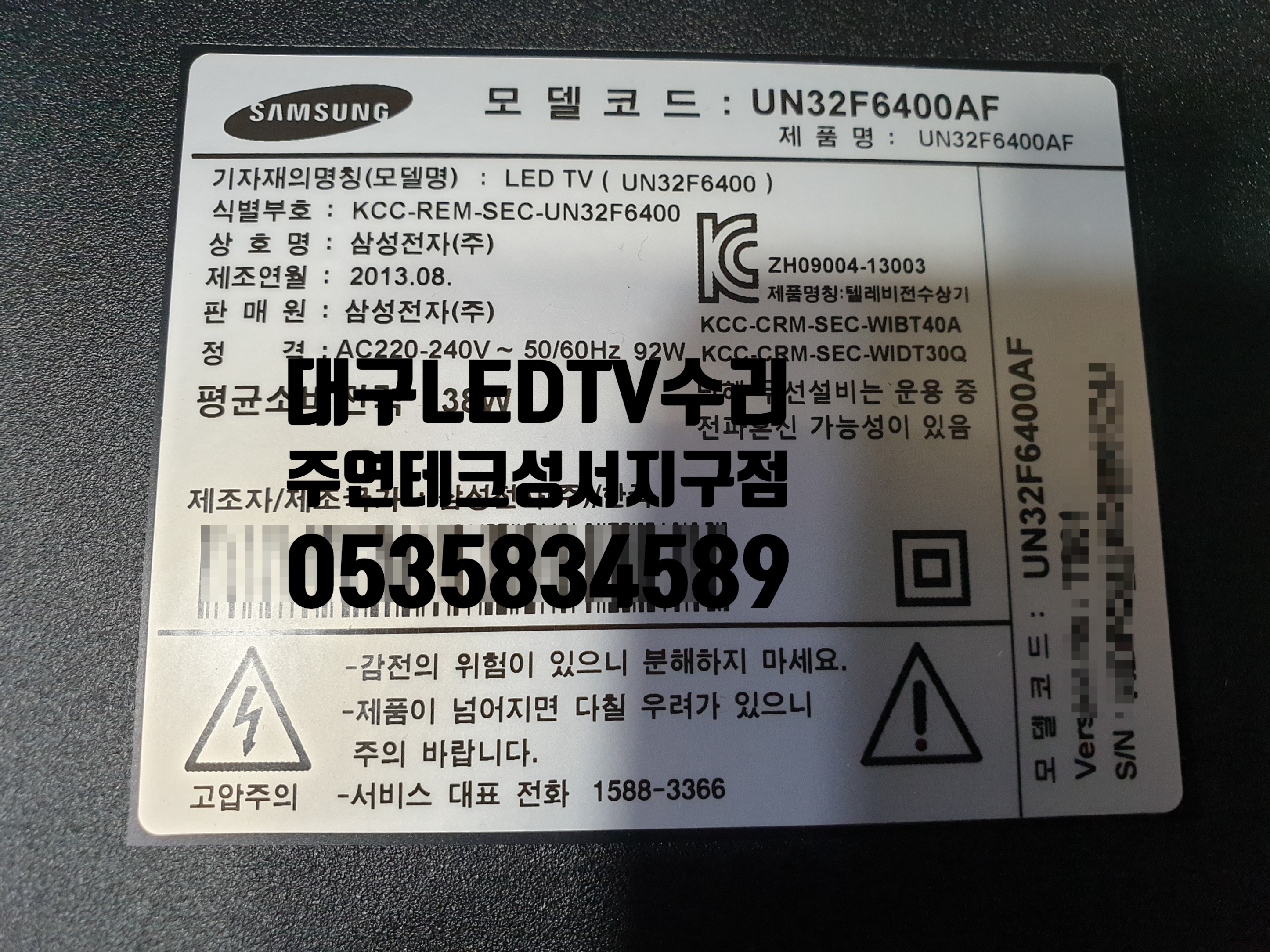 삼성32인치LEDTV/대구TV수리/대구티비수리/대구화면안나오는TV수리/삼성UN32F6400AF티비수리/TV백라이트교체수리