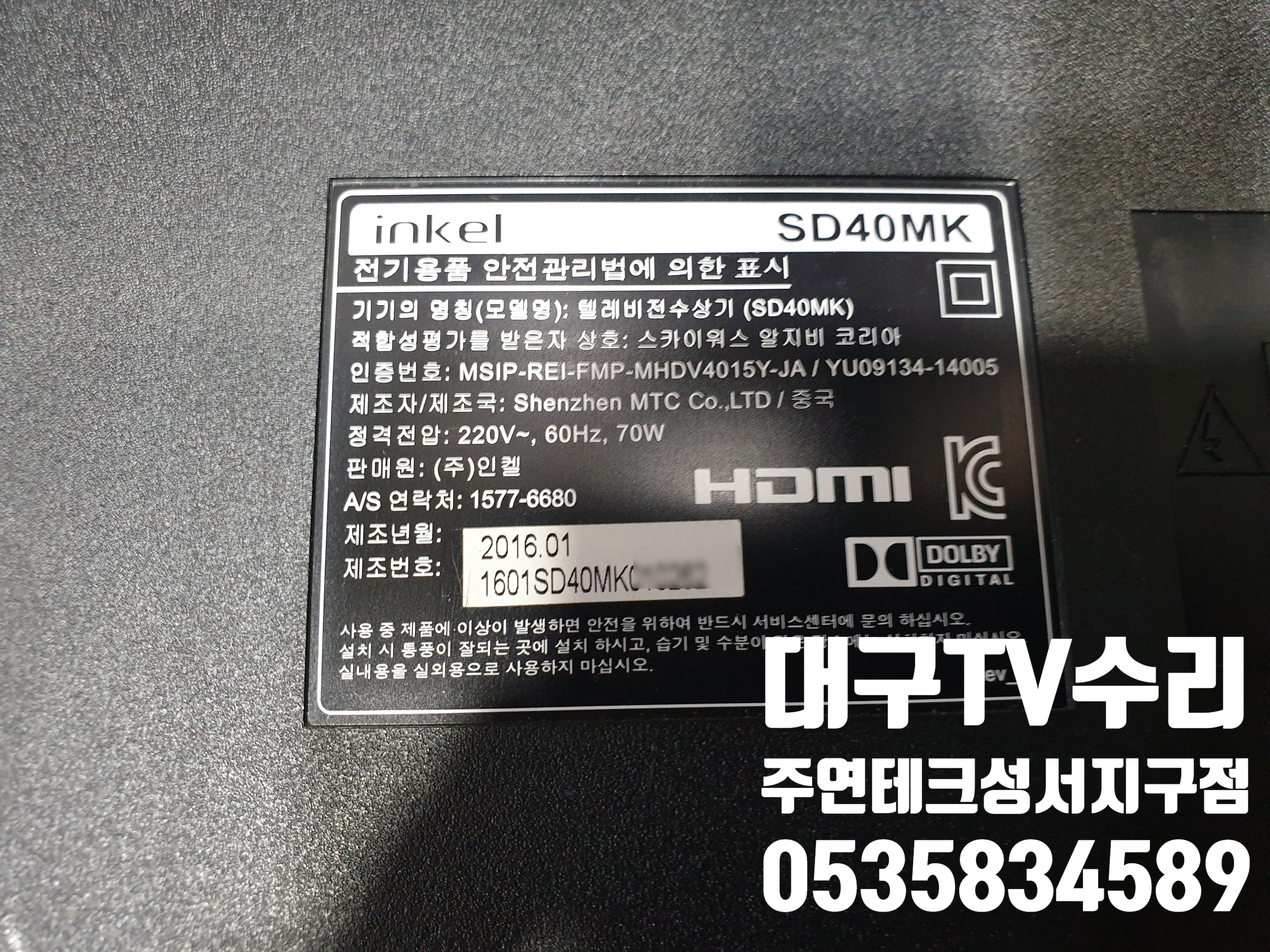 대구TV수리/대구INKEL40인치TV수리/인켈TV화면안나오는증상/inkel인켈SD40MK/스카이워크 알지비코리아/중소기업텔레비전수리