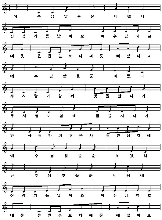 예를들면 예수님 맞을 준비됐나 곡으로 한다고 할 때